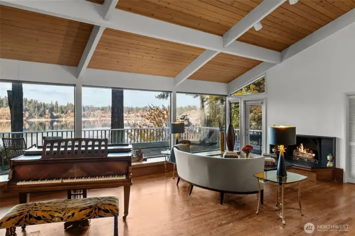 Stunning ~ Custom built home with one of the best lots on the lake with a picturesque view of Gravelly Lake! Private floating dock and Gazebo! Light & Bright w/Open kitchen, soaring beamed ceilings, built ins, multiple decks, all w/ Spectacular Views of the spring fed Gravelly Lake, Mt Rainier & PNW Splendor. Spacious Master View Suite. Skylights thru out, Forced Air/ AC, surround sound. New floors in huge basement space. Lower, view level is the perfect Entertaining Space w/ 2nd wet bar, 2nd kitchen area, deck access, & office area. Mature, Tastefully Manicured grounds. Come with a vision- A must See! Sold as is.