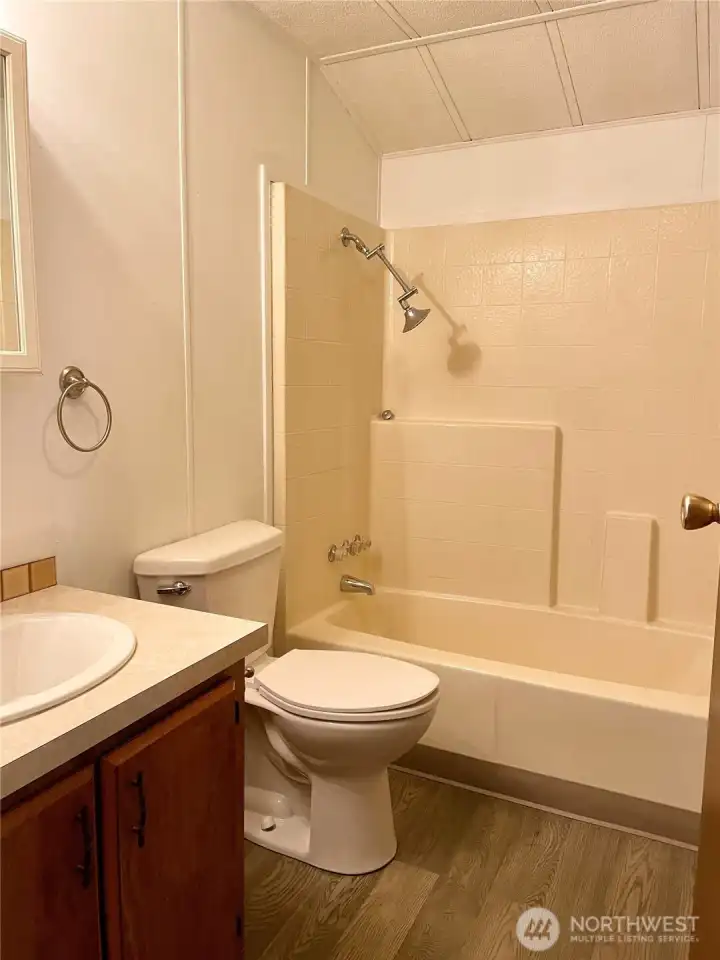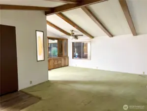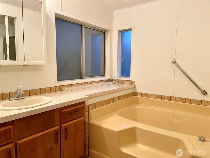 Affordable living in quiet 55+ park!  This 2 bed home offers a spacious and open feel, vaulted ceilings, 2 full bathrooms with soaking tub in primary bathroom and freshly painted interior.  This one is nestled at the end of the street with a nice little yard space and a real private feel!