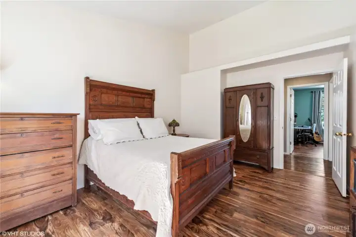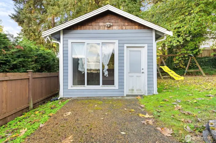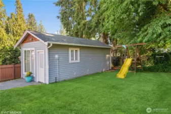 Uncover the ultimate location & convenience with this remarkable home at Canyon Place. With 3 bdrms & 3 baths, newer roof, newer floors & paint, vaulted ceilings, master suite w/walk-in closet & double vanity bath, modern shiplap, luxury plank vinyl floors downstairs in the massive great room & a huge laundry rm w/space to add a kitchenette, this property offers income producing potential w/sep entrance downstairs. Enjoy the serenity of your private, park-like oasis featuring an elevated fire pit w/seating overlooking your mature landscaping, garden space & covered patio! Don't miss the 320 sq ft detached studio/gym w/power & heat! Add'l BONUSES - RV parking, hot tub ready & a 8' x 20' room that can be converted to an office/workshop!