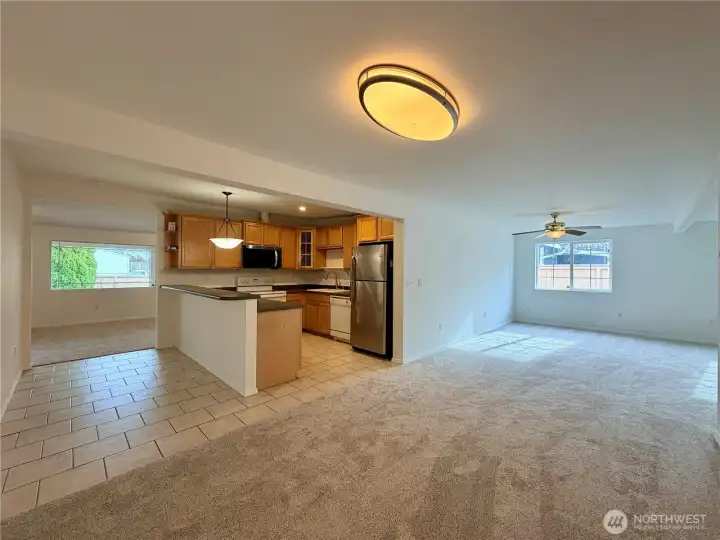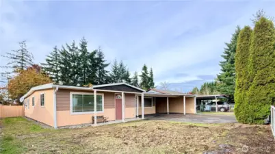 Nice rambler in the heart of Lakewood. Bright open floor plan with lots of natural light. This 3 bedroom 2 bath home flows freely with a large living room, dining area and huge family room. Big primary bedroom has a walk in closet and good size bathroom. It also includes an all glass sunroom (130 sf) and shed for your storage needs. Kitchen with maple cabinets and breakfast bar. Home was recently painted, tile flooring, new carpet and all appliances stay. Very conveniently located near Bases, I-5, Hwy 512, schools, parks, restaurants, shopping and entertainment.