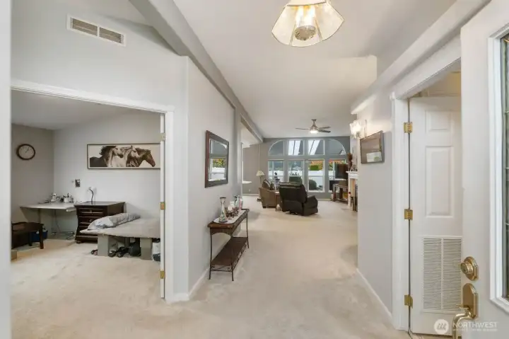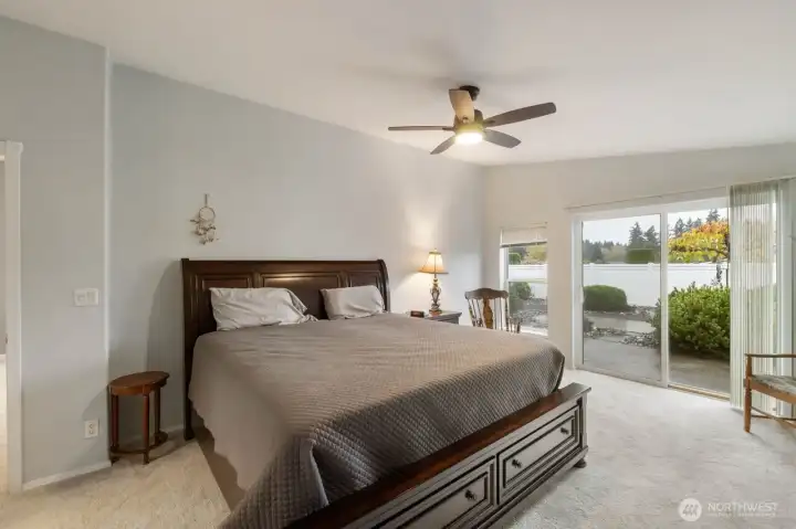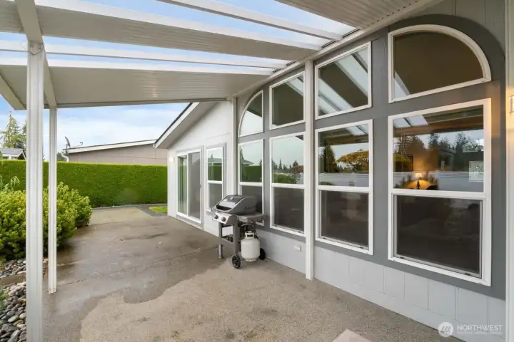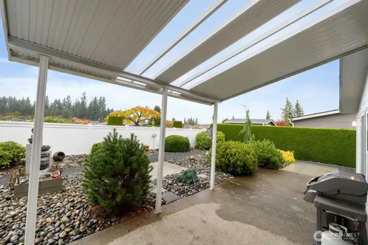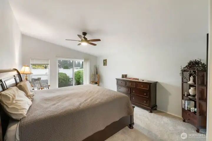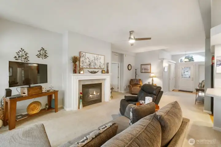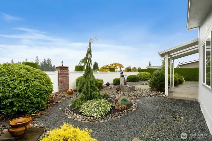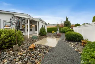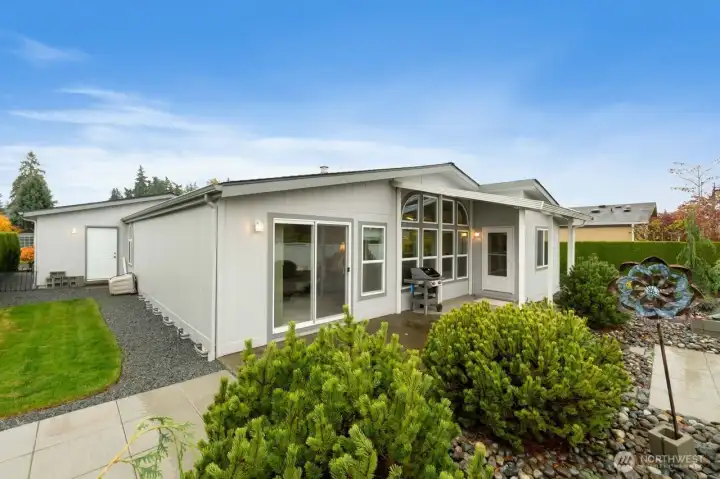 Come join the sought after 55+ community of Harvest Gate. Wonderful 3 bedroom Mt. Vernon floor plan with open living, kitchen & dining areas, lovely gas log fireplace in living room, lots of light pours in, large Primary suite with slider to patio, 5 piece bath & huge walk-in closet. Bright guest bedroom. All appliances stay, laundry room with many cabinets & sink. Big 2 car garage, large covered patio and beautiful landscaping and big yard. Newer furnace and air conditioner, roof only a few years old, mew garage door, new dishwasher, stove and fridge, new carpeting in 2022, new vinyl flooring, new awnings! Clubhouse, RV parking, gated security & more. Assumable lot lease good into 2040! Hurry to this one!