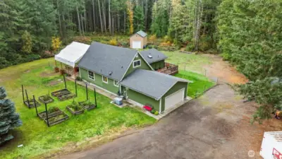 Gated 5-acre oasis surrounded by a 28-acre forest provides unmatched privacy! You can have it all with this beautifully updated 3BR/2BA home. Enjoy a modern kitchen with quartz countertops, maple soft-close cabinets, upscale SS appliances & fabulous walk-in pantry. Stunning great room features vaulted ceilings, newer carpet & cozy gas fireplace w/marble surround. Spiral staircase to loft bedroom, 2 others on main level. Stylish bathrooms include heated floor & 6 foot soaking tub, a zero-entry shower with dual heads & upgraded mirror lighting. Huge covered trex deck overlooks backyard. 2-story (16x24) shop & ample parking! Gardener's paradise or perfect for hobby farm & horses! Don't miss the nature trail around the perimeter of the acreage!