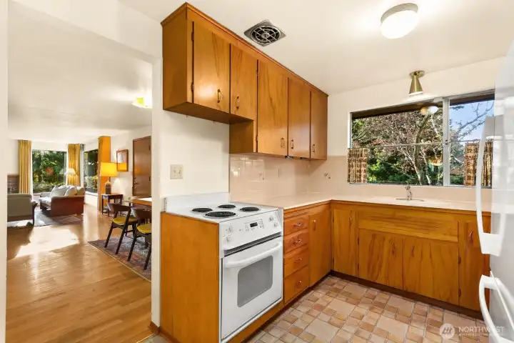 Step into classic mid-century charm with this beautifully preserved Shorewood rambler, tucked on a quiet corner lot beside the lush Salmon Creek Ravine Park. Thoughtfully maintained & built to endure, this home features a lifetime metal roof, leaf guard gutters & mature landscaping—including a sunny fenced garden perfect for outdoor lounging or weekend projects. Inside, you’ll find a curated blend of vintage detail & timeless design: original hardwood floors, period tile, large picture windows & a cozy wood-burning fireplace anchor the home in its era. The oversized one-car garage offers extra workspace, tool storage & a secondary laundry setup for muddy boots or workshop cleanup. RV or boat parking completes the package. A real 1960's gem!