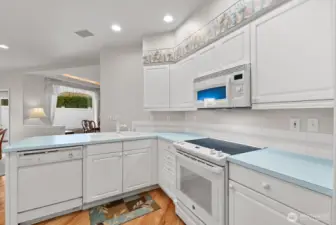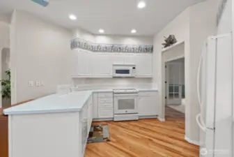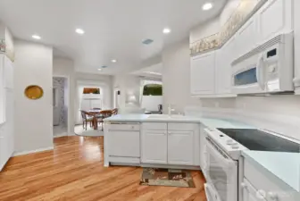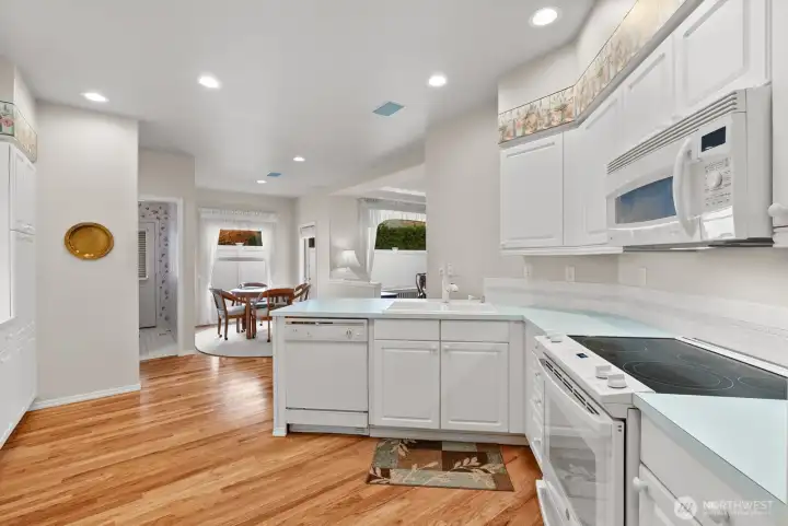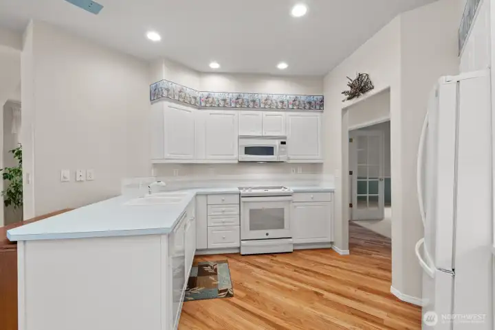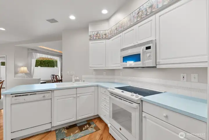Tucked inside a gated community in the heart of UP, this level-entry single level Craftsman offers low-maintenance living + walkability to parks, transit & conveniences. Large picture windows, cozy gas fireplace, den w/built-ins, beautiful flooring throughout & central A/C. Kitchen features flat top range, large peninsula for bar seating, separate dining room; refreshed guest bath w/tile, upgrades & modern finishes; large laundry with storage & sink. Primary bedroom with walk-in closet & spa-style bath with spacious, no-step shower, quartz countertops, upgraded fixtures, new tile flooring, & tons of storage with pull-out shelving. Enjoy the oversized patio w/AstroTurf & pavers framed by lush firs. Useful 2-car garage + optional RV parking.