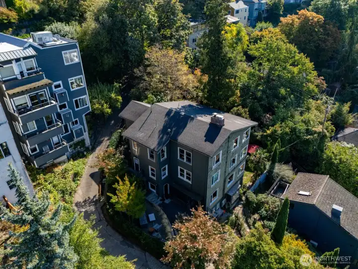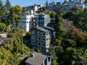814 E. Howe Street offers a serene setting with convenient access to SLU, Downtown, I-5, SR 520, and the Eastside. The property has had updates to the sewer, plumbing, and main water line systems. Significant renovations have been made to 3 units, while the other 2 have benefited from some updates. The building boasts 3 oversized two-bedroom homes, each making for a Lake Union view owner-occupant opportunity. Units showcase oak floors, 9' ceilings, and updated dual-pane windows. Select units boast remodeled kitchens, new baths, and in-unity laundry. Multiple apartments offer Lake union and skyline views. Parking for 5 vehicles (2garage). This is a likely opportunity for 10%+ upside (raised rents, charging for parking and utilities).