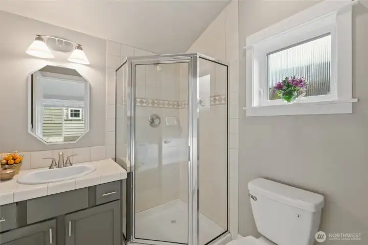 Immaculate Stand Alone House in Ideal Location. Meticulously maintained and beautifully updated low maintenance house with attached two car garage with E/V charger, on the Burke-Gilman trail and close to Metropolitan Market. Near Children's Hospital, University Village and UW. Gorgeous new kitchen, gleaming dark oak floors, two bedroom suites on upper and additional bed and bath on lower. Large, private and fully fenced patio with dog run. No HOA, no monthly dues, no rental restrictions. High end paint and carpet, dust-free radiant heat, new appliances and hot water heater. Everything has been done here, just move in, flip on the gas fireplace in the spacious living room and invite your friends over or visit nearby 350 acre Magnuson Park.