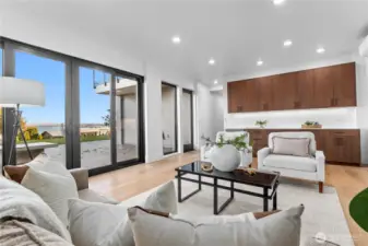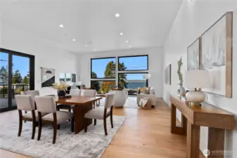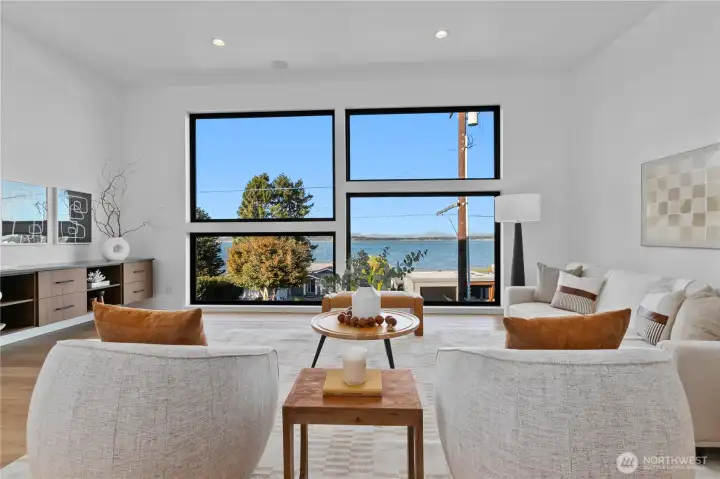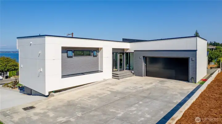 Experience modern coastal luxury in this newly completed 3BR, 5BA home in Point Whitehorn. Perfectly positioned for sweeping views of Birch Bay & the Canadian Mountains, it offers an elevated lifestyle just minutes from a state park & deeded beach access. Designed for refined living, it features a chef's kitchen with commercial grade appliances & a dedicated prep area. White & French oak hardwoods, walnut cabinetry, full height tile & sleek contemporary finishes create timeless appeal. Each BR has its own bath, plus 2 flex spaces-one with a wet bar & sauna. Outdoor living includes a ground level patio with custom concrete fire table & a spacious top floor deck. A rare opportunity to own new luxury in a premier coastal location.