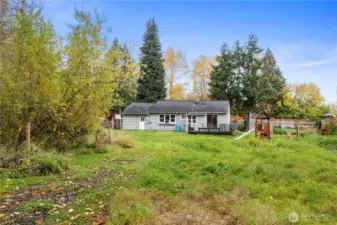 Cute country charmer on 1 acre! This delightful 2-bedroom, 1-bath home includes an office/den and a spacious bonus room. Relax by the cozy wood-burning stove or enjoy morning coffee on the covered country porch. A large deck off the back is perfect for entertaining or taking in the peaceful view of the seasonal pond and gardens—a true gardener’s delight! The property also features a 24x30 detached shop/garage, ideal for hobbies or extra storage. NO HOAS! RV Parking. Opportunities are endless! Conveniently located for easy commutes and close to amenities while still offering that quiet country lifestyle.