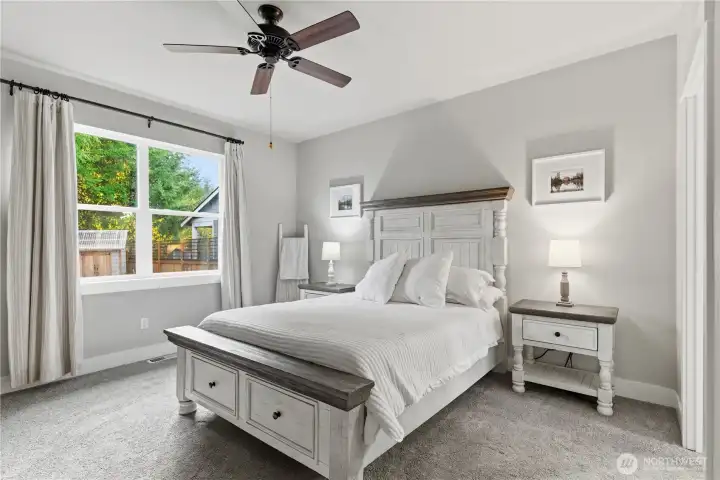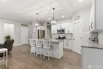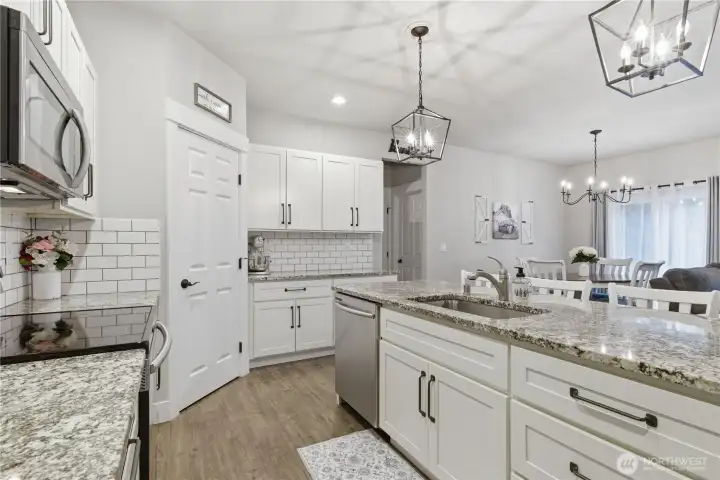 Modern style, thoughtful design, and a tranquil natural setting in this 3-bedroom, 1.75-bath rambler, offering a perfect blend of comfort and privacy. Deluxe craftsman-style design with a three-car garage & well-maintained landscaping, including hot tub. The open-concept living area welcomes you with abundant natural light, neutral tones, and elegant finishes. The spacious living room flows seamlessly into the dining area, making it ideal for both relaxing and entertaining. Granite countertops, white shaker cabinets, stainless steel appliances, and a large island with bar seating. The primary suite includes a private bath with modern fixtures and walk-in closet. Two additional bedrooms provide flexibility for guests, an office, or hobbies.