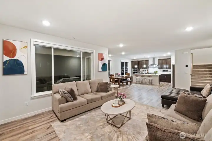 Welcome to The Pines at Sunrise! The main floor features an open-concept great room and dining area that flows to a covered patio, perfect for indoor-outdoor living. The kitchen boasts a large center island and corner pantry, ideal for entertaining and everyday use. A study/office and a half bath complete the main level. Upstairs, you'll find a versatile bonus room, three secondary bedrooms, a full hall bath, and a spacious primary suite with a walk-in closet and attached bath featuring dual vanities, soaking tub, and separate shower. Stylish, functional, and move-in ready!