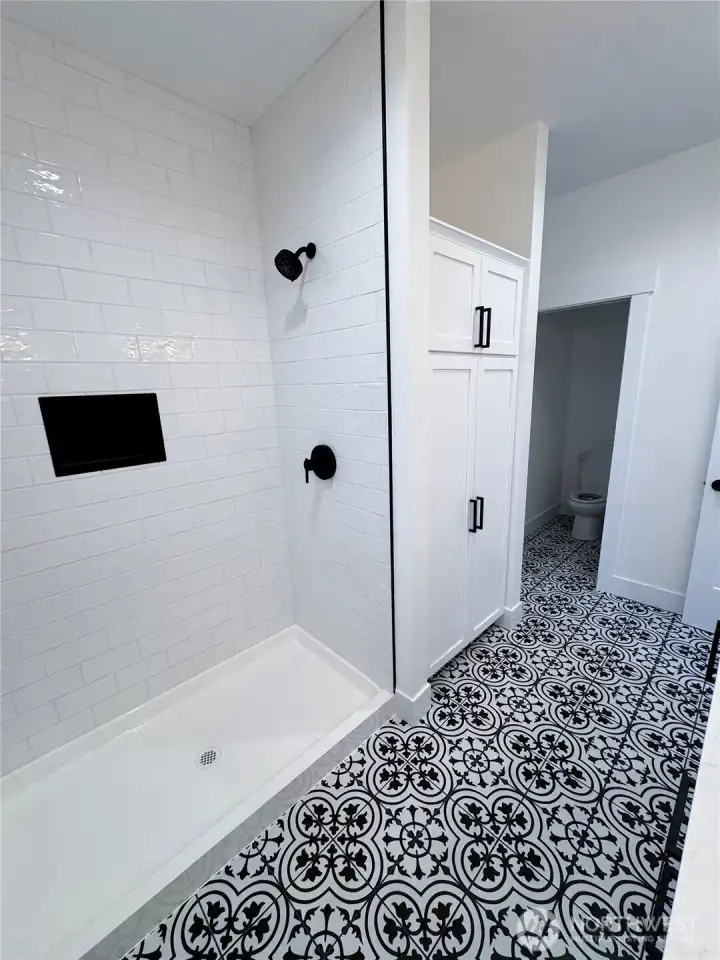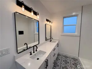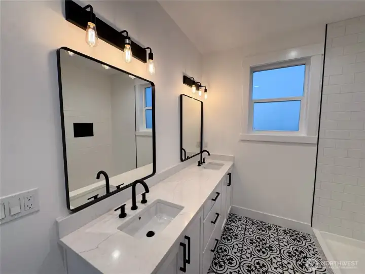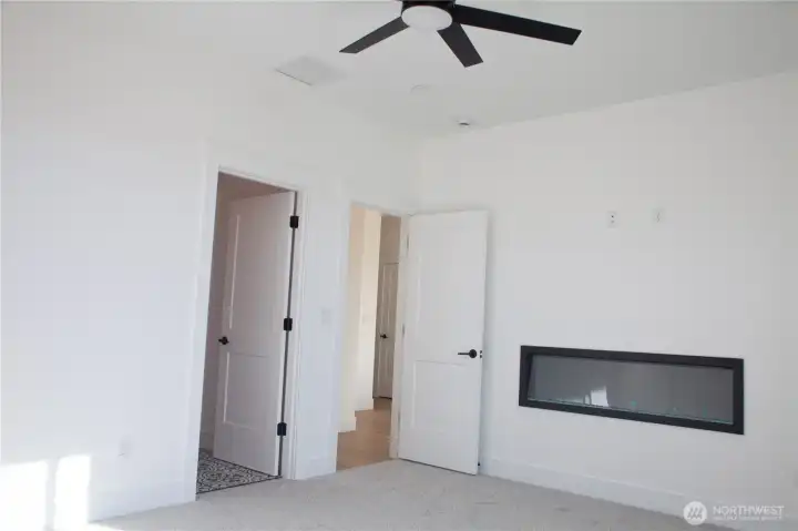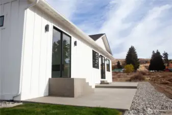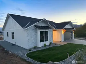 The builder spared no expense on this build! From the sand finished concrete, brick veneered accent, cement board and batten siding, stained wood beam accents, to the high end black framed windows and fully landscaped lot w/ sprinklers. The kitchen is bright and airy w/ high end stainless steel appliances, Quartz countertops , LARGE island, plenty of cabinet space for all of your cooking needs. Master suite includes a sliding glass door to the back patio, a fireplace, a luxurious en-suite bathroom with custom tile floors and shower surround and walk-in closet. Main bath has plenty of storage space, herringbone tile floor and shower walls. RELAX w/ 2 large back patios for BBQ's and taking in the views or cozy up to one of 2 Fireplaces.