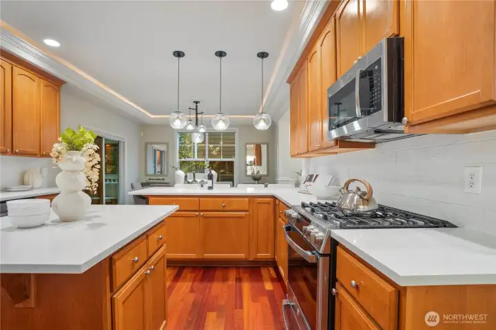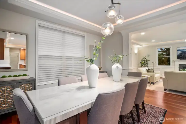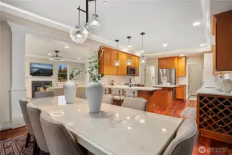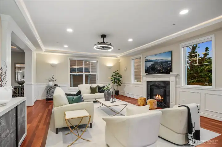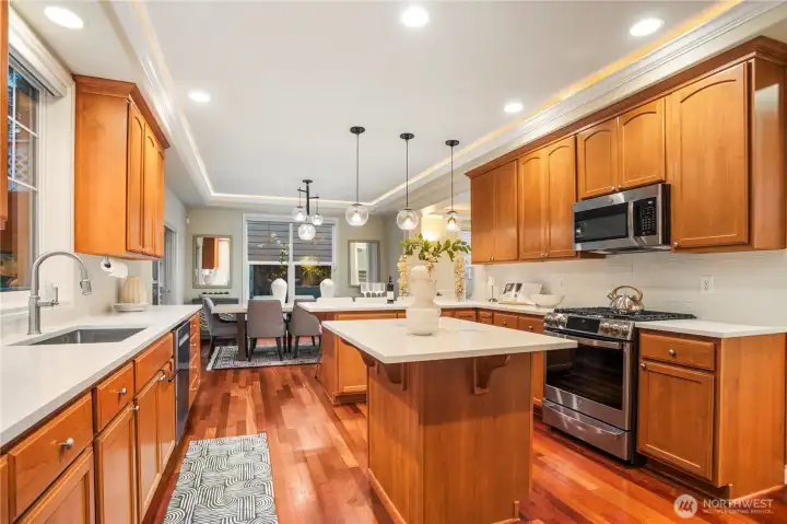 Tucked away in the Renton Highlands, this beautifully maintained home combines timeless design with modern updates & everyday comfort. Hardwood floors extend throughout the main level, leading to an oversized kitchen with quartz countertops, stainless steel appliances, & a walk-in pantry. The living room showcases a gas fireplace, wainscoting, & crown molding with ambient lighting. Upstairs features a luxurious primary suite w/ a 5-piece bath, walk-in closet, three additional bedrooms, & a bonus room. Step outside to a fully fenced backyard with a spacious deckâperfect for entertaining. Conveniently located near grocery stores, coffee shops, & The Landing, with easy access to Coal Creek Pkwy & 405. Minutes to DT Bellevue!