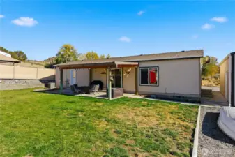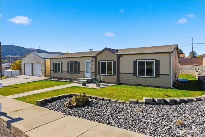 This well maintained 3 Bedroom 2 bathroom Manufactured home sits on a spacious 0.28 acre lot, offering plenty of room to relax and enjoy. The property includes a large 30x30 shop with plenty of space. Storage shed behind home perfect for any yard equipment or supplies. Enjoy the Covered patio area outside of Kitchen slider. Located just minutes from Grand Coulee Dam, Banks lake, Lake Roosevelt. Inside you'll find an open floor plan with generous space, convenient laundry room, and primary suite featuring walk in closet and primary bathroom.