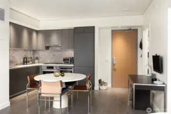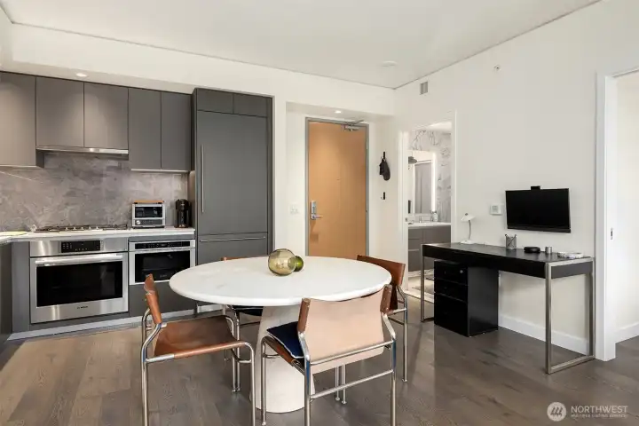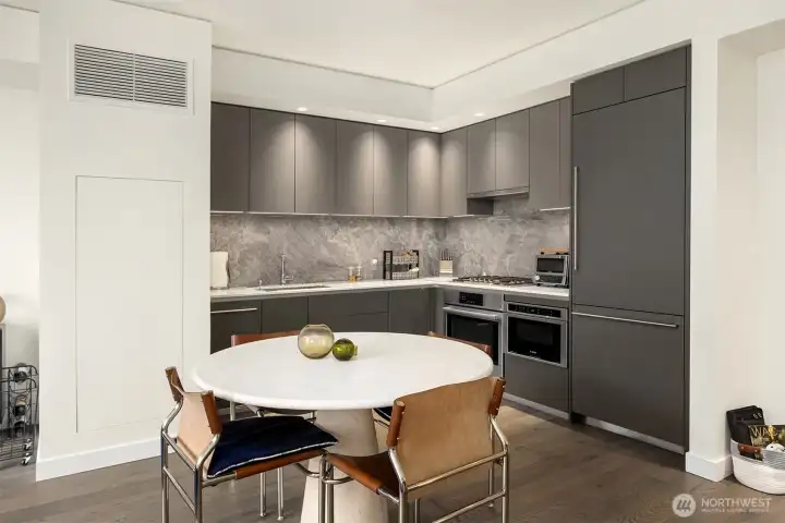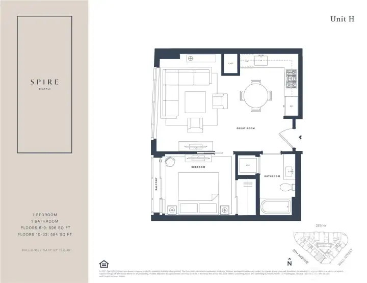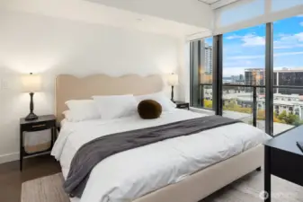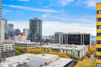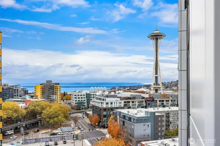Welcome home to Spire! This west-facing, sunset-view one-bedroom home with peak-a-boo views of the Sound and Olympic Mountains feels practically new and has been lovingly maintained. Features include Bosch appliances, L shaped kitchen, floor-to-ceiling windows in the living and bedroom areas, hardwoods throughout, and a spacious, spa-like bathroom. Spire offers premier amenities across three levels—rooftop fitness center, private dining spaces, and an expansive wraparound terrace with nearly 360° views and a building staff that is loved by the residents. Perfectly located near South Lake Union, Belltown, and Queen Anne with easy access to Seattle’s best dining, shopping, and entertainment.