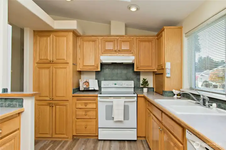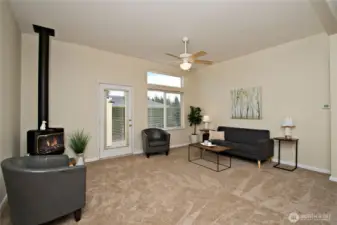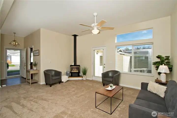 Welcome to Water Gardens, a beautifully maintained 55+ gated community. This inviting 2-bedroom plus den home offers an open floor plan w/NEW carpet, NEW roof, new interior and exterior paint & NEW LVP flooring in the kitchen, dining & both baths. The spacious kitchen opens to a comfortable living & dining area, & includes a freestanding gas stove adding warmth & charm. The primary suite features a walk-in closet & double sinks. The utility room w/ sink & storage leads to garage. Step out back to a Trek deck, garden space & fenced backyard w/ a storage shed. Mt. Rainier View! Community scenic ponds, waterfalls, and social events all within minutes of Maple Valley & Covington. Optional RV parking available. Extra $35/month for lawn mowing!