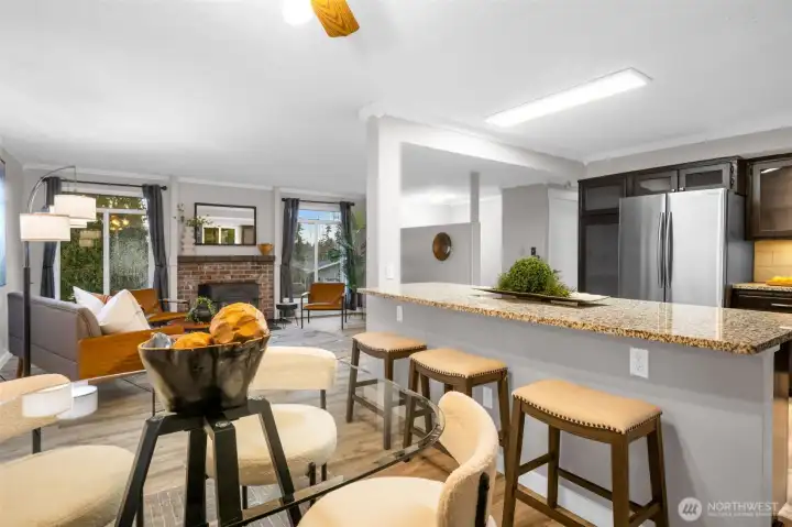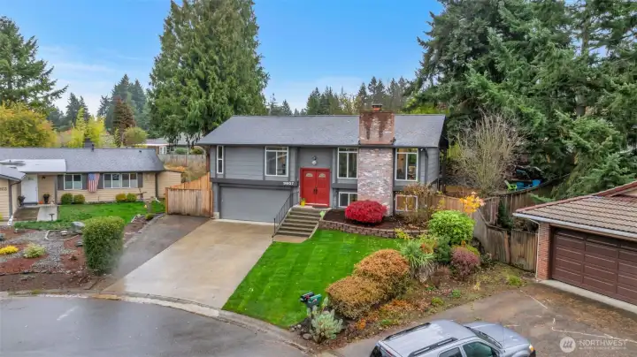 Discover this beautifully updated split-entry home tucked away on a quiet cul-de-sac in the sought-after Twin Lakes golf course community! The open-concept kitchen, dining, and great room shine with modern updates, fresh finishes, and abundant natural light. A wood-burning fireplace adds warmth and charm, keeping you toasty and cozy. You'll find the bonus room/den downstairs—ideal for guests, work, or play. A covered deck invites you to grill, relax, or unwind year-round. From there, access the Jacuzzi and spacious backyard—perfect for games like badminton or volleyball, or simply enjoying the outdoors around the fire pit. Move-in ready and thoughtfully updated, this home offers comfort, flexibility, and style in a vibrant neighborhood!
