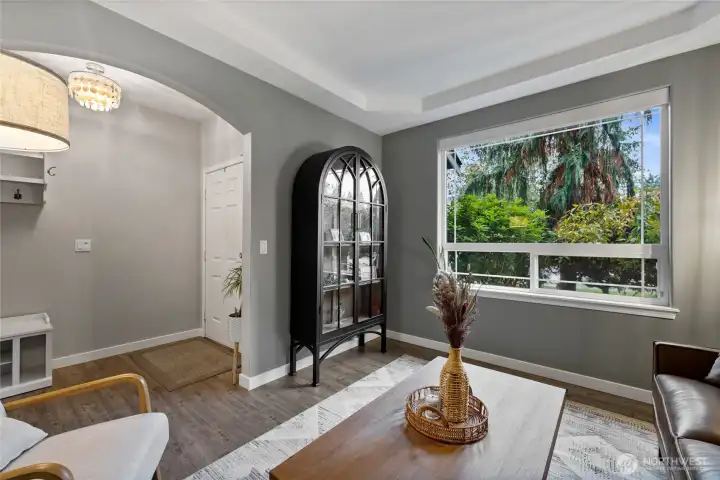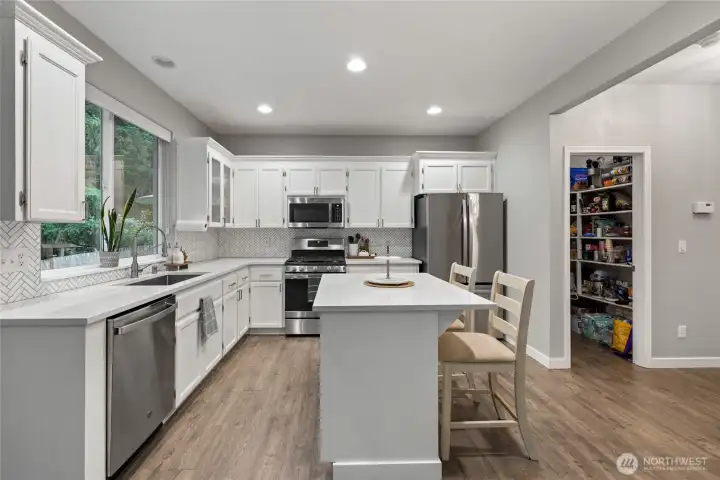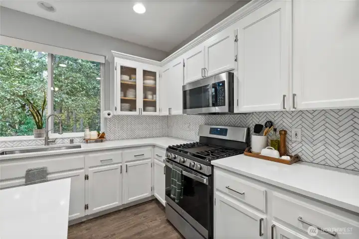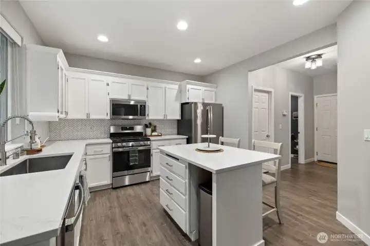 Tucked along a greenbelt in the Sunrise area, this refreshed home feels calm the moment you step inside. Fresh interior paint, updated lighting, and new laminate flooring on the main level. The kitchen brings new quartz countertops, refreshed cabinets, tile backsplash, stainless steel appliances, and a gas range ready for the chef of the home. Upstairs, you are greeted by a large flex room and brand new carpet. Major investments already handled: a 2022 roof and a 2025 drainage upgrade with a sump pump and French drain for year-round confidence. Out back, the large patio allows you to relax and enjoy the view, and the in-ground sprinkler system keeps it looking sharp. Shop, dine, and commute with ease in this convenient location!