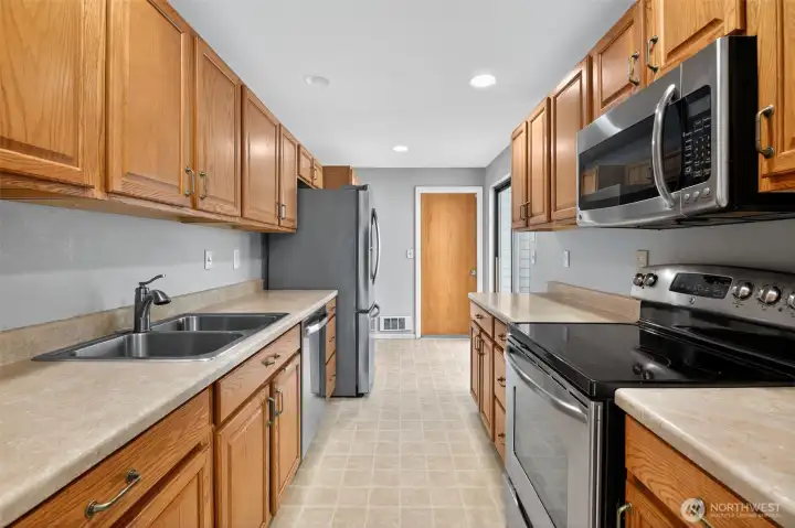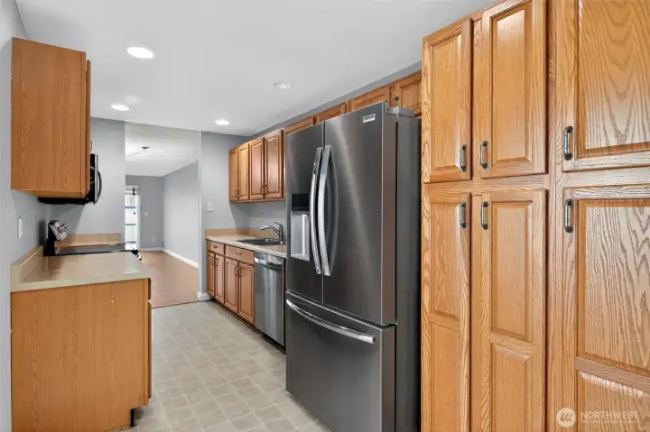 Beautifully updated 3-bedroom, 2-bath townhome in the desirable Tall Firs community! The main living area features easy-care laminate flooring, crisp white millwork, and classic 6-panel doors. Enjoy brand new carpet, updated lighting, blinds, and faucets, plus all newer windows. The kitchen offers abundant cabinetry, pull-out pantry shelves, and stainless steel appliances that stay. A spacious two-car garage includes a workbench, cabinets, and overhead storage. Relax in the private backyard and patio. Community amenities include a clubhouse, pool, tennis and basketball courts, racquetball, and RV/boat storage.