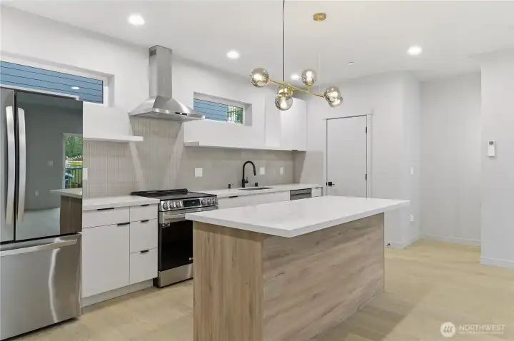 Luxury gated townhome community! 5 homes left! This home features a massive open concept living space with a sprawling island kitchen w/ thoughtful half bath. Upstairs you will find a primary bed ensuite + guest bed and additional bath. Each home built green w/ high-end energy-efficient materials including metal roofing, cement siding, & ductless mini-split systems. Engineered hardwoods, ceramic tile, quartz counters, large picture windows, skylights, & designer hardware + fixtures throughout. Enjoy spacious closets & walk-in showers. BONUS washer/dryer + video doorbell included. Secure covered parking & fully fenced lot backs to 10k sq ft private wooded space. Low HOA dues!