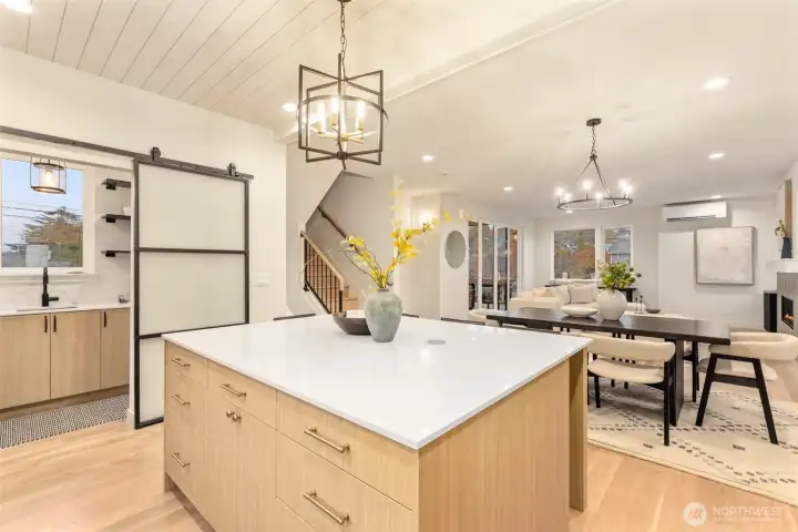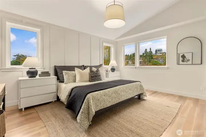 Madrow Homes presents this beautiful new construction home in Seattle's desirable Magnolia neighborhood. Walk into a versatile first floor with two large bedrooms (one w/ en-suite) that can also be utilized as office or living space. Step up to the stunning second floor living space with gorgeous open-concept kitchen, living, dining, covered deck, walk-in pantry, & chic powder room--ideal for entertaining. Top floor holds 3 bedrooms including primary with luxurious spa-like en-suite, as well as laundry room. Designer touches make this a must-see. Wide plank SOLID oak floors! Situated on a corner lot and fully detached with large front yard, this is a rare find for new construction! Attached garage & over-sized driveway = plenty of parking.