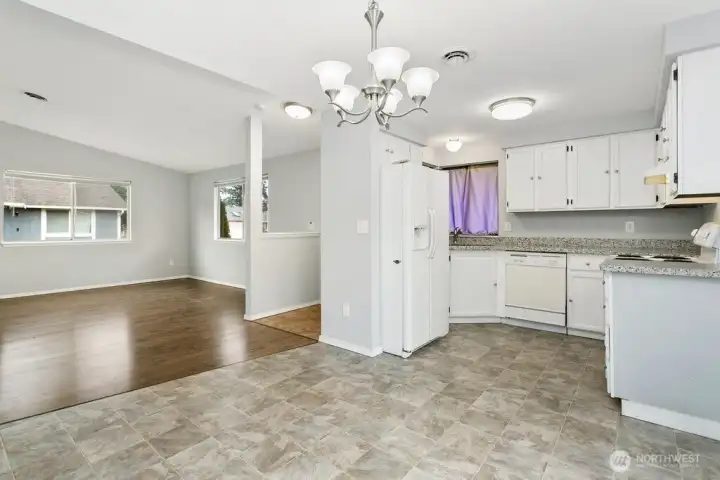 This charming 3-bedroom, 1 bath home features wood laminate flooring and granite countertops. Vaulted ceilings in the living room and a skylight fill the space with natural light, creating an open and inviting atmosphere. The kitchen flows seamlessly to the dining area, ideal for entertaining. Additional features include a demand water heater, extra parking, and a private backyard for relaxation. With its functional layout and move-in ready condition, this home offers a perfect blend of style, comfort, and convenience—don't miss your chance to make it yours!