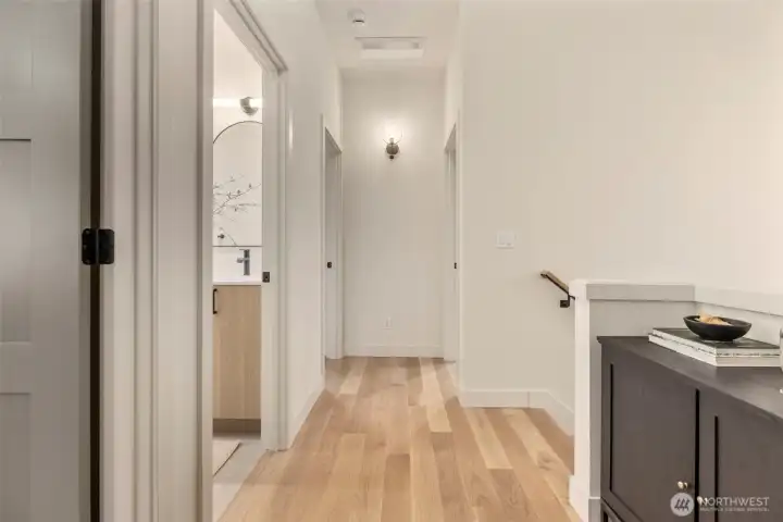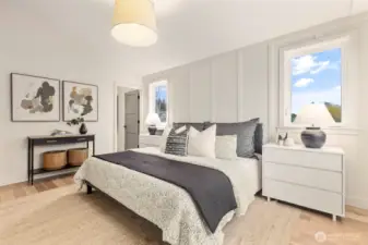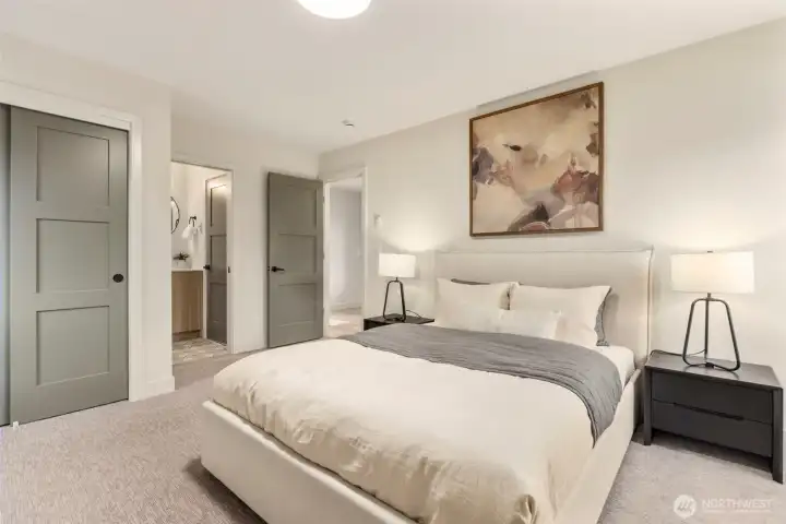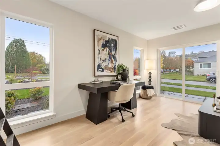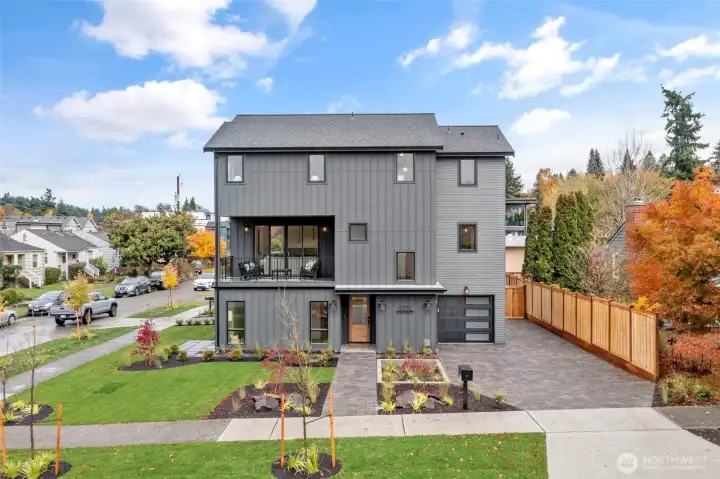 Madrow Homes presents this beautiful new construction home in Seattle's desirable Magnolia neighborhood. Walk into a versatile first floor with two large bedrooms (one w/ en-suite) that can also be utilized as office or living space. Step up to the stunning second floor living space with gorgeous open-concept kitchen, living, dining, covered deck, walk-in pantry, & chic powder room--ideal for entertaining. Top floor holds 3 bedrooms including primary with luxurious spa-like en-suite, as well as laundry room. Designer touches make this a must-see. Wide plank SOLID oak floors! Situated on a corner lot and fully detached with large front yard, this is a rare find for new construction! Attached garage & over-sized driveway = plenty of parking.