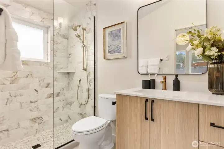 Madrow Homes presents this beautiful new construction DADU home in Seattle's desirable Magnolia neighborhood. Enjoy street-facing DADU living on what feels like its own separate lot. Walk into the main floor that is equal parts stylish and functional featuring beautiful open-concept kitchen, living, dining, & trendy powder room. Second floor holds 2 bedrooms including primary with en-suite, as well as laundry. Engineered hardwoods throughout, designer touches everywhere--this home will be the spot to host your friends! Dedicated parking space & front yard. Builder warranty. Enjoy the convenience of Magnolia living with restaurants & shopping nearby in The Village, plus easy access to SLU, DT, Discovery Park, Ballard, and QA!