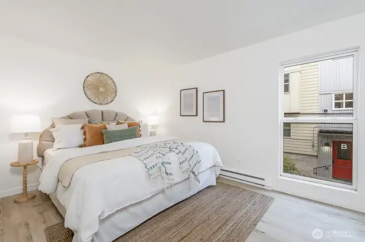 Don’t be fooled by the façade—this 1960s classic has been fully renovated for modern and comfortable living. Step inside to fab finishes throughout: new LVP flooring, quartz counters, designer lighting and new appliances. SW exposure brings in massive natural light, and the large west-facing covered balcony extends the living space outdoors for summer dinners, plant tending, or late-night lounging. Prior building upgrades include new siding, windows, decks and plumbing. Dedicated parking, extra storage and shared laundry on each floor makes it easy. Quiet tree-lined street a block from Analog Coffee, few blocks to Top Pot, less than ½ mile to light rail and an easy jaunt to downtown. Pet-friendly. No rental cap; one-year occ required.