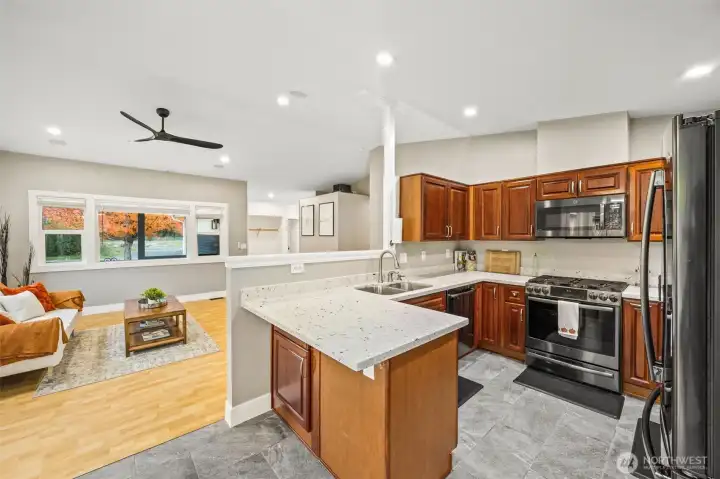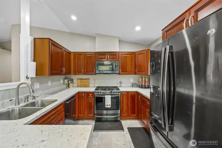 Move-in ready and beautifully maintained, this charming 1-story home has only had 2 owners! Enjoy a stylish kitchen with newer cabinets, appliances, lighting, and flooring (2023). All appliances stay including built-in home theater speakers, Nest thermostat, and Ring doorbell. The primary suite features a private ¾ bath, plus new blinds throughout (2023). Major updates include a new roof (2020), hot water heater (2022), and AC/furnace (2025). The large, level, fully fenced backyard is perfect for entertaining with RV parking and a gas hook-up for BBQ or hot tub. No HOA and conveniently located near highways, shops, and restaurants...this home truly has it all!