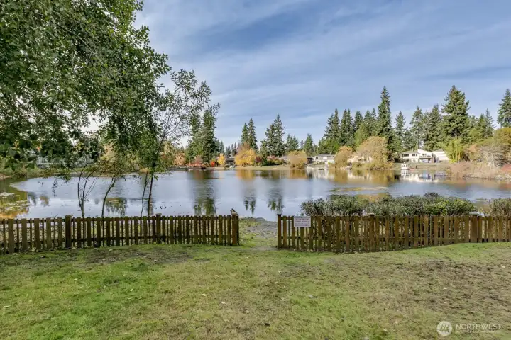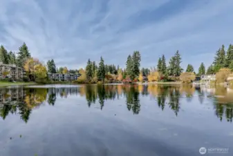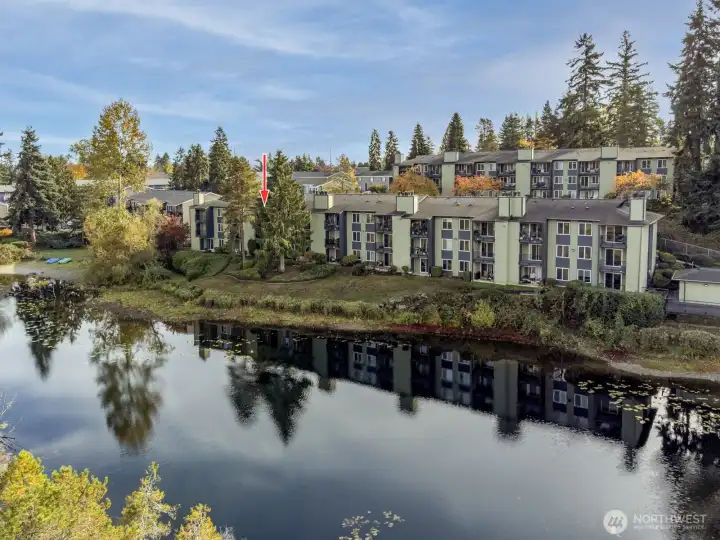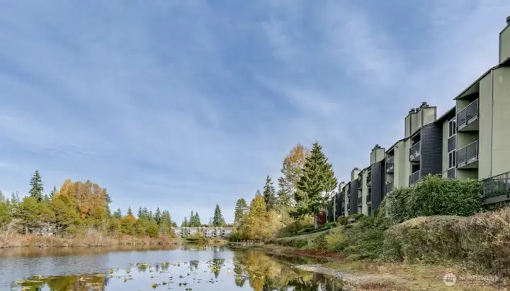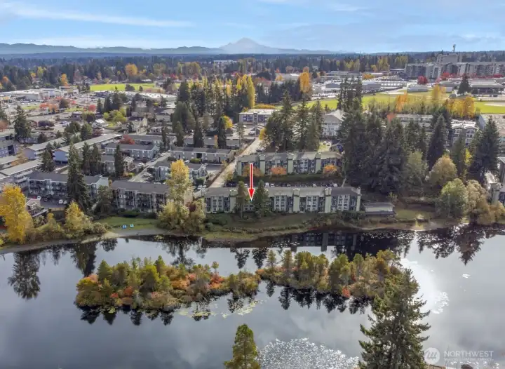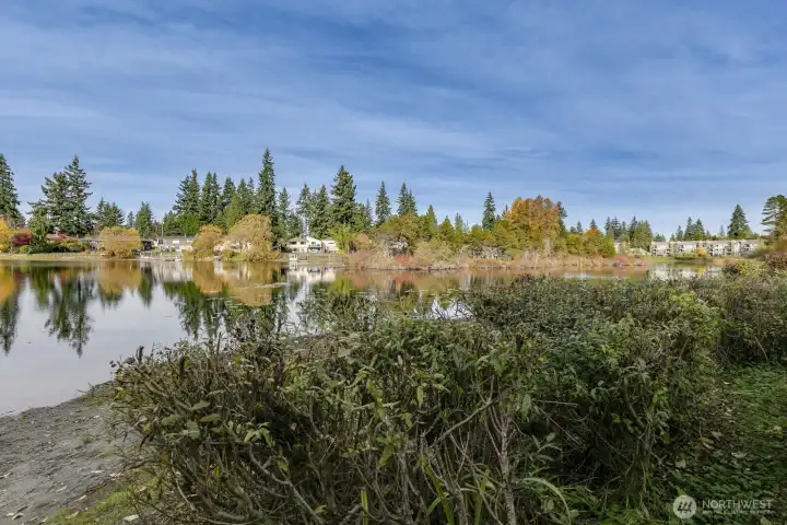 Fall in love w/the lake views from this updated & peaceful condo. Enjoy watching waterfowl & wildlife from the windows or even better on your private balcony overlooking Beverly Lake. Inside is new carpet, paint & lighting; updated kitchen & bathroom. Kitchen has ample space, SS appliances & open to dinning/living rms. Primary w/walk-in closet plus second large bedrm. Full bath & washer/dryer complete the space. NO stairs, just a single step for entry from the level parking lot. 2 parking spaces & plenty of visitor parking. HOA dues are low & no assessments. Well run HOA w/solid reserves & well maintained buildings. Community areas include beach front & lake access, go paddling or fishing! EZ commute to Boeing or freeway. Walk to Starbucks!