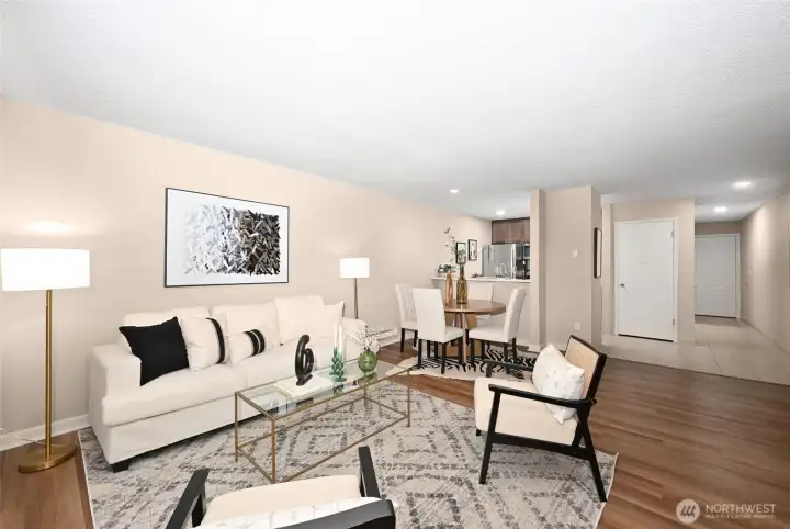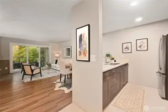 Easy living! Serenity and comfort define this remodeled 1-level end unit. Classy kitchen updates include cabinets, countertops and appliances. Snazzy bathroom refresh as well. Open concept offers a generous dining area flowing seamlessly into a cozy living room. Wood-burning fireplace is a nice added touch. Large deck area to sip your morning coffee or enjoy the warm summer nights. Assigned covered parking space, and ample visitor parking. A pet-friendly HOA, and no rental cap. Tucked away privately at Island Habitat, yet mere minutes to stores, restaurants, schools, park and I-90. A truly turnkey opportunity.