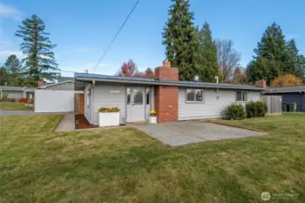 Don’t miss this sunny mid-century modern gem in the heart of Seamount Neighborhood! 3 bedrooms w/ vaulted ceilings & ample sun exposure. Updated full bath & large updated kitchen w/ tile backsplash, quartz countertops & stainless steel appliances. Open-concept greatroom w/ vaulted ceiling, exposed beam, clerestory windows & brick fireplace w/ modern gas insert. Large corner lot features oversized driveway, fully fenced private backyard, extensive hardscaping & mature landscaping w/ rhododendron tree & decades-old majestic evergreen. Shed w/ power has room for workshop, hobbies & storage. Metal roof, new sewer line, tankless H20 heater & LVP floors throughout. Two blocks to FHS & quick access to I-5 & downtown Ferndale. Book a tour today!
