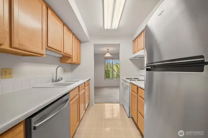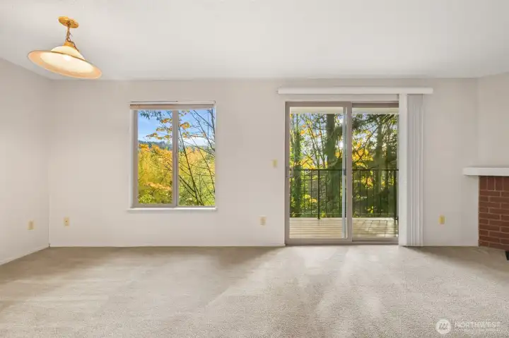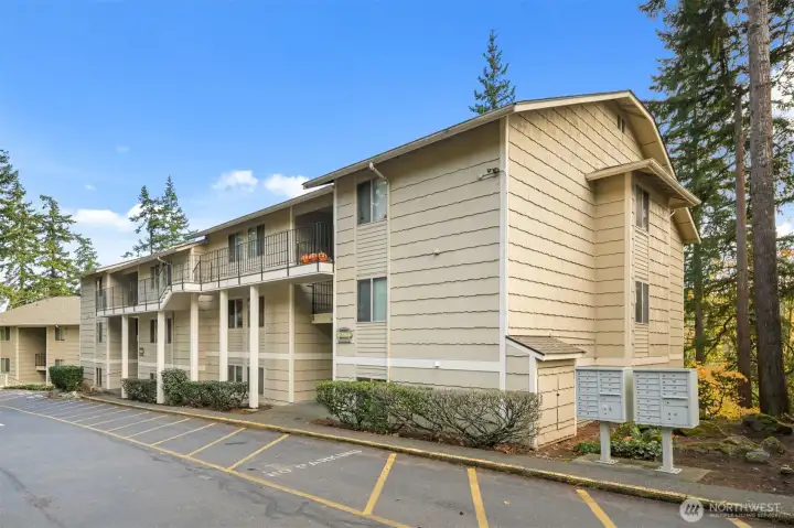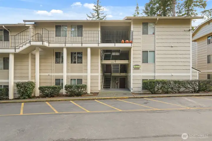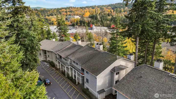 INVESTORS & those seeking comfortable & AFFORDABLE OWNERSHIP: 2 BD 1 Bath rentable condo blocks from WWU campus & Sehome Village! Ready to rent or move in & plan light cosmetic upgrades. Enjoy 2 large BR's, a spacious full bath, galley kitchen w/all appliances including a brand new dishwasher & the spacious living / dining room span nearly 1000 sq. ft. Central forced air heat, cozy wood-burning fireplace & a private balcony to sip coffee & enjoy the surrounding forest setting. Comes with a reserved parking space close to unit & plenty of visitor parking + busline right in front. The complex has a newer roof, windows, patio decking & no pending assessments. Dues are $350/mo. Create instant equity with this excellent investment.