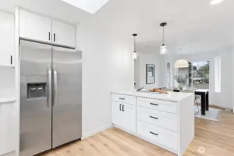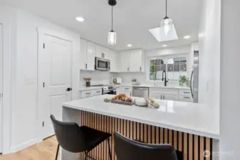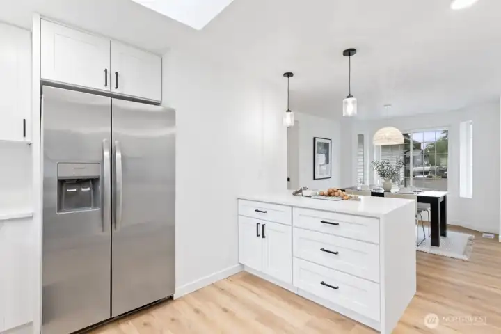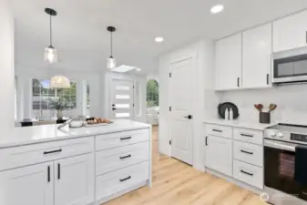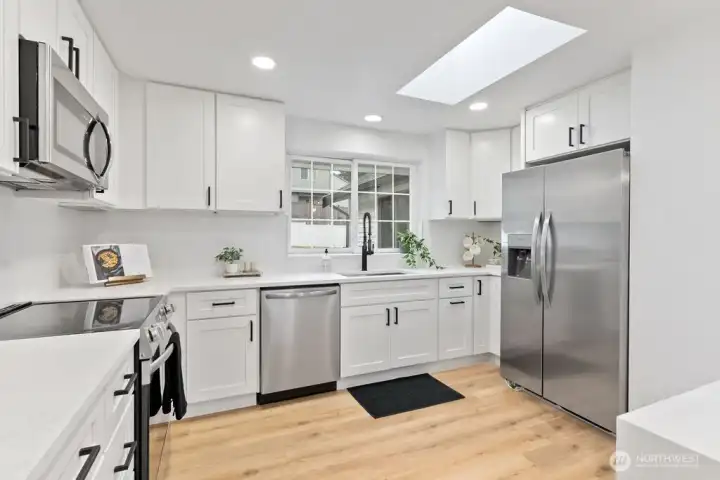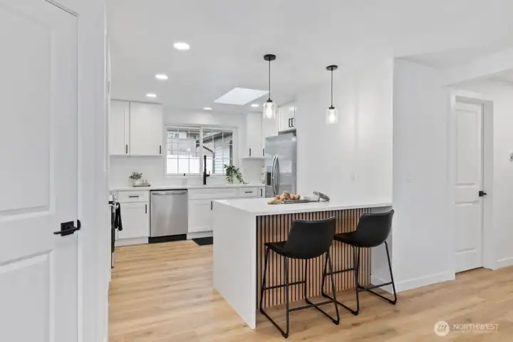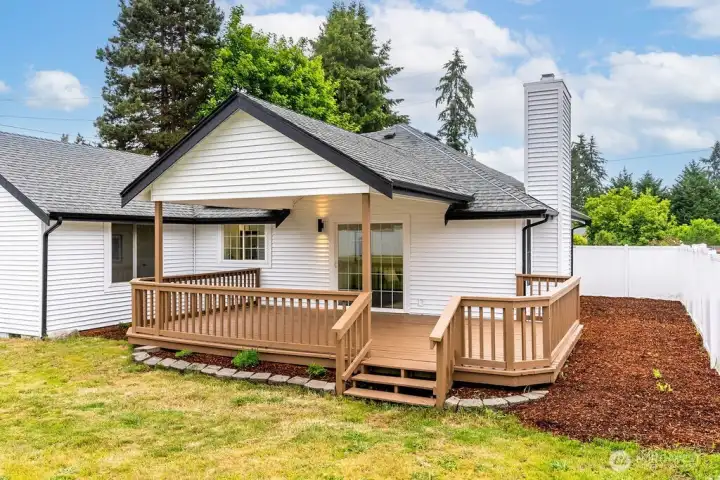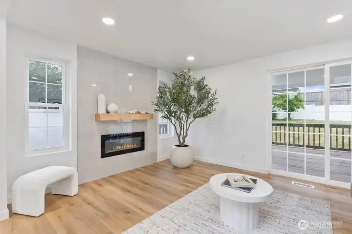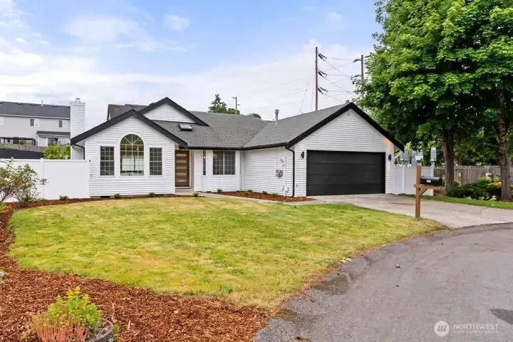 Welcome to your dream home! This beautifully remodeled 1,400 sq. ft. single-story residence offers modern elegance and comfort. Located on a peaceful cul-de-sac, it features 3 bedrooms, 2 bathrooms, and eco-friendly solar panels. The gourmet kitchen includes a quartz waterfall island, stylish backsplash, and new appliances. The primary bedroom has a chic barn door and en-suite bathroom. The open living area with a modern electric fireplace connects the living and family rooms. Enjoy the outdoor oasis with a covered deck and a new vinyl fence. The large lot offers plenty of space for activities. Situated on a dead-end street, this home is both serene and safe. Must See. Don't miss out this one won't last long! Schedule your showing today.