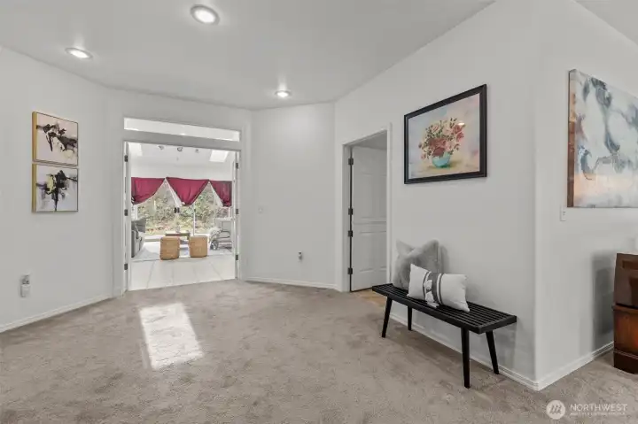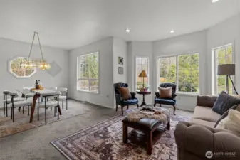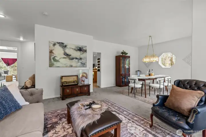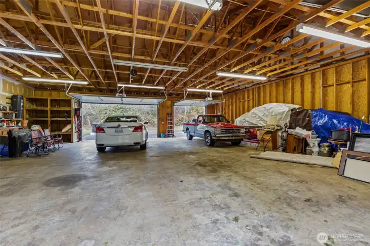 Welcome to 4.5 wooded, country acres to find your rambler home and dream garages for every car or hobby you wish! This spacious, custom-built rambler awaits your touch to live out quiet, comfortable days alongside hosting and gathering to your heart's content. Enjoy a bright solarium with tall windows and skylights in the center of the home, an open concept kitchen with countertops and storage for days flowing to the living room warmed by the fireplace. The primary bedroom leads with french doors to the 5-piece bathroom with giant jetted tub. This 3bd home is suited with a 4bd septic, generator hookups, and holds an 8-car garage attached to home PLUS 1000sqft detached shop with 2 bay doors for boat, RV or perhaps DADU!