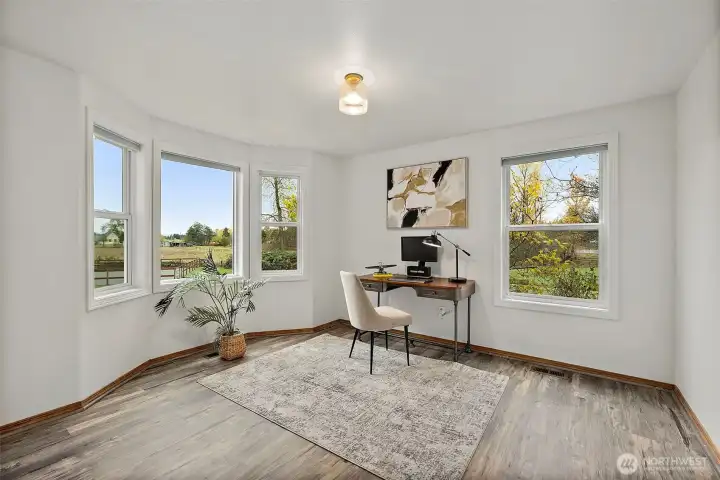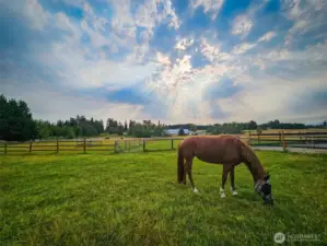 [PREMIER EQUESTRIAN ESTATE] Nestled on nearly five pristine acres, this horse haven features a 6-stall barn, mudless gravel paddocks w/ RAM fencing, insulated tack room, and lofted 4-ton hay storage. 20x60m arena offers a year-round riding experience. Cross-fenced pastures and natural landscaping promote harmony with the land. Incredible location just minutes from Bello Acres & O’Grady Trail System. The elegant 4-bed, 3.25-bath home offers refined country living: hardwoods, French doors, solar power, and high-efficiency systems. Expansive windows frame unmatched mountain vistas, while open-concept spaces blend warmth and sophistication. A rare opportunity to own an equestrian masterpiece—where sustainable design and Northwest beauty unite.