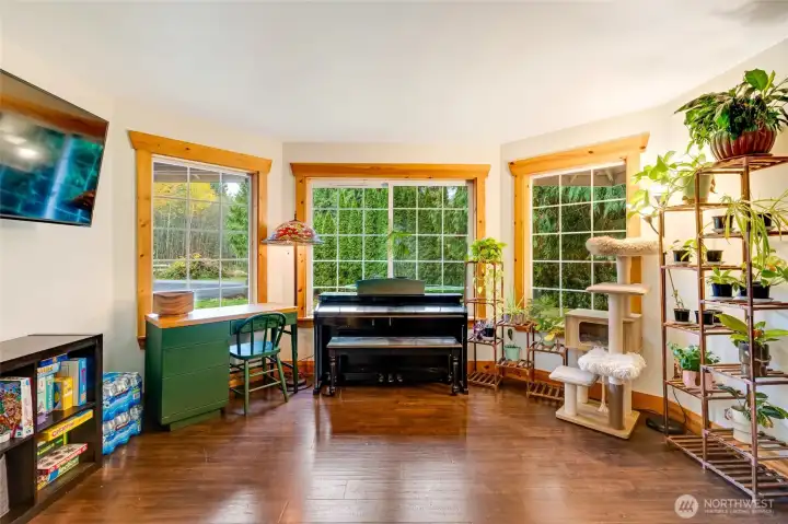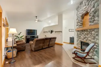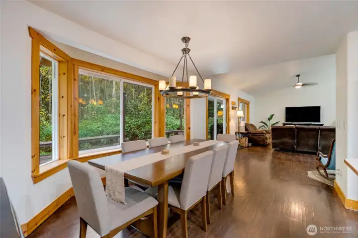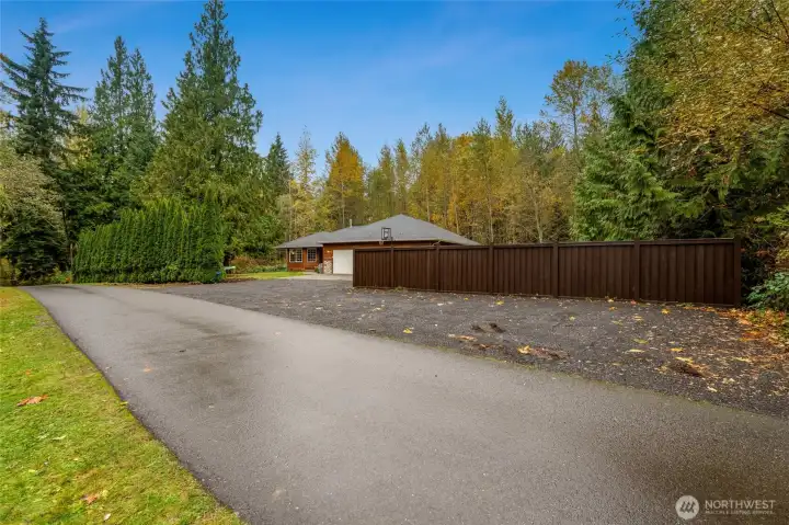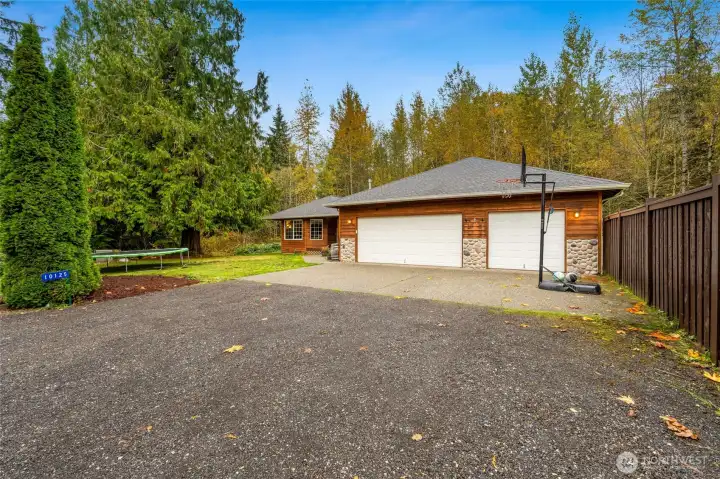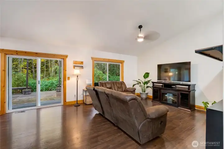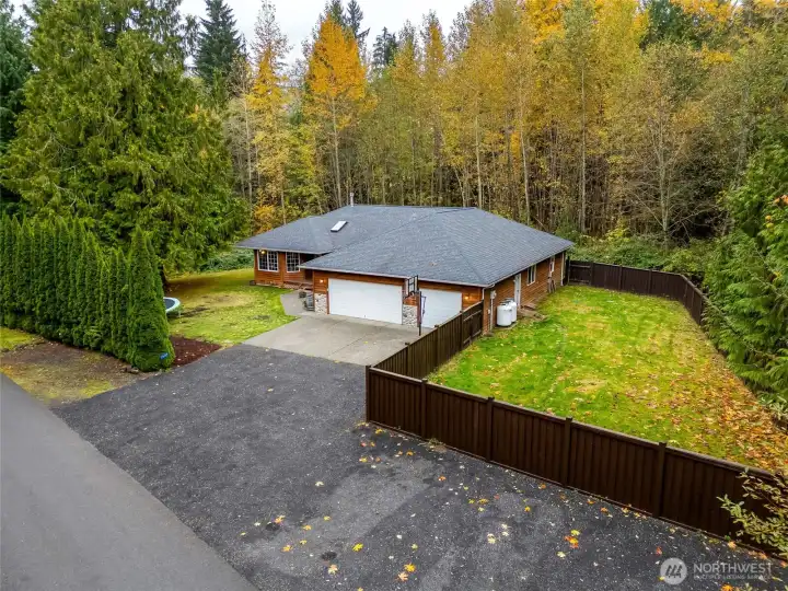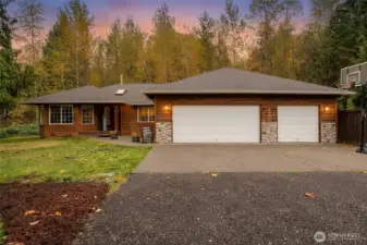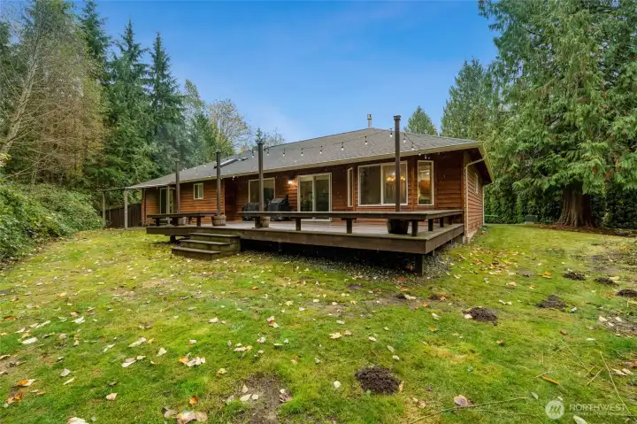 Peaceful country living on nearly 5 private acres with no HOA, just minutes from town. This single-level rambler features an open layout with vaulted ceilings, a river-rock fireplace, and large windows overlooking the private, wooded setting. The spacious primary suite includes dual walk-in closets and a 5-piece bath. Enjoy a large entertaining deck, RV parking, dog run, 3-car garage, and a flat usable area, ideal for a future shop, animals, or more. A rare blend of space and convenience.