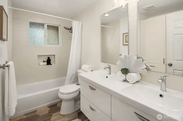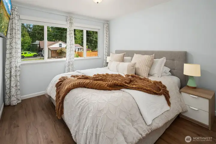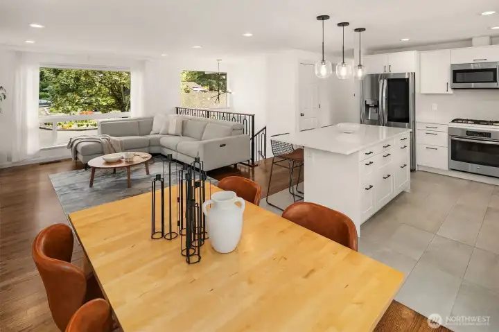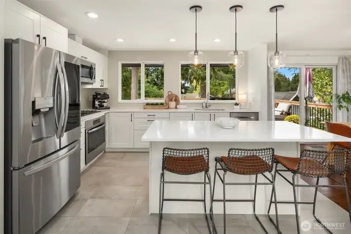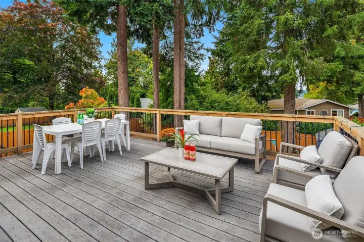 Fully remodeled, light-filled home on Education Hill, offers a well-designed living space w/a large attached 500 sqft 2-car garage, EV ready near top-rated schools. The upper floor has a spacious kitchen w/quartz countertop & modern cabinetry, open space living room, leading to a huge custom-built outdoor deck w/access to a fully fenced landscaped yard. Bottom floor is fully remodeled with space efficiency & multi-purpose design, which can serve as two offices, family & guest room, or a primary. Fully equipped with smart homes: premium Lutron light switches throughout, surrounding security cameras, smart garage doors, locks & AC. Prime location, short distance to top schools, Redmond Town Center, light-rail, Bella Bottega, MSFT, Meta & 520