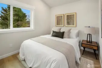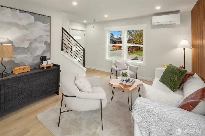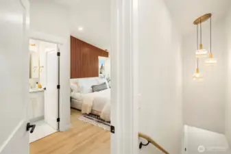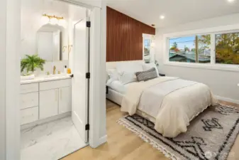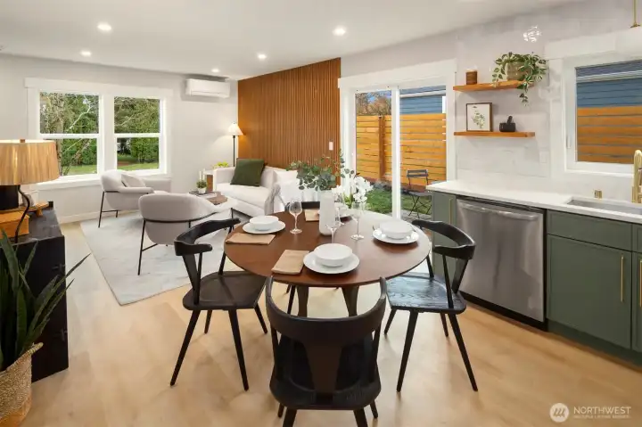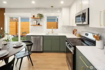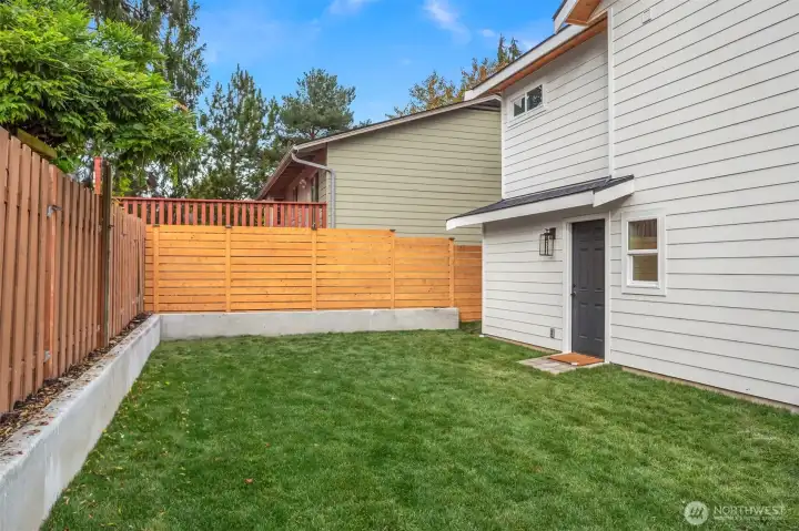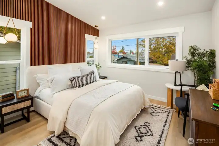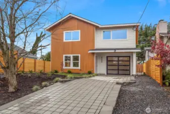 Sitting high above the street, this new construction 3-bed, 2.5-bath, 1-car garage residence welcomes you with exceptional style. Open-concept main floor with wood paneled feature wall, kitchen with quartz counters, and powder room. Upstairs, you'll find the large primary suite complete with an ensuite bathroom with rain shower system, wood paneled wall, pendant reading lights and a walk-in closet. Two additional bedrooms, laundry room, and full bath complete the upstairs. Garage is wired for EV charging or use it as an extension of your living space. Outside, enjoy a private and spacious fenced yard with patio off the dining area. Easy access to transit, parks, restaurants and shops in a quiet neighborhood!