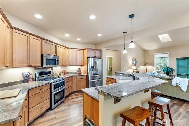 Experience Pacific Northwest living at its finest! Nestled on 2.43 acres of manicured, magazine-worthy grounds, this custom-built home blends timeless craftsmanship with modern comfort. The open floor plan offers spacious bedrooms, including a beautiful primary suite with slider to the patio and views of the lush yard. Enjoy a large office, generous mudroom, cozy fireplace, heat pump, and full generator. Fenced area for pets and a serene, private setting—just 10 min to Hwy 16 and 20 min to the ferry