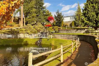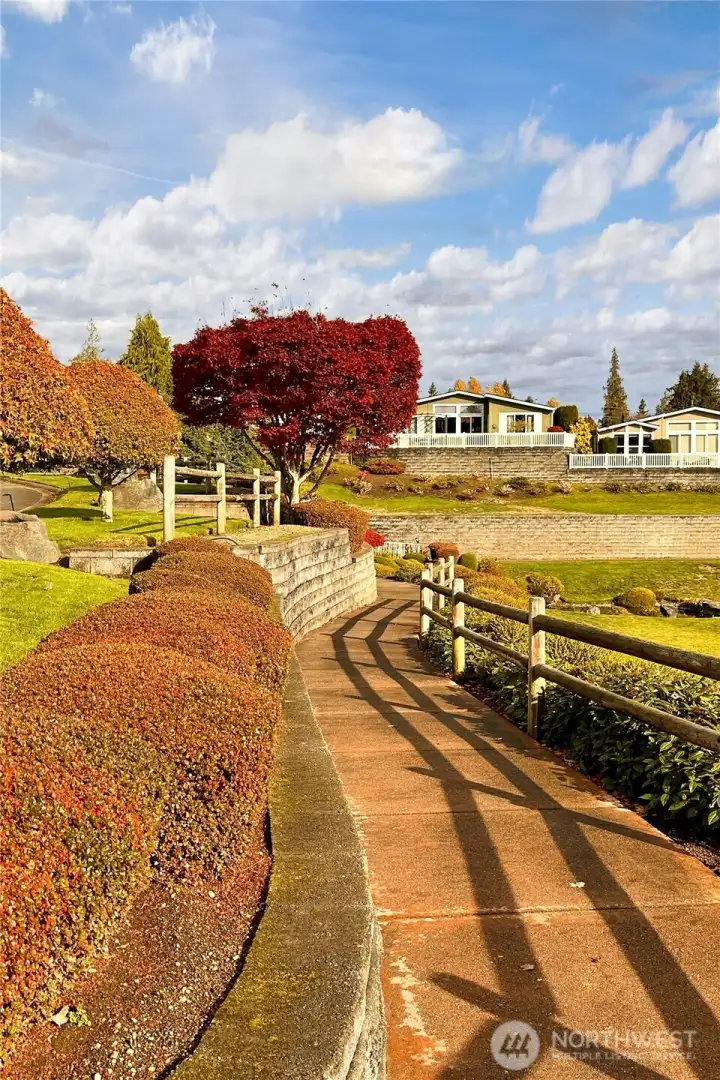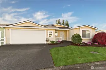 Welcome to Water Gardens, a beautifully maintained 55+ gated community. This inviting 2-bedroom plus den home offers an open floor plan w/NEW carpet, NEW roof, new interior and exterior paint & NEW LVP flooring in the kitchen, dining & both baths. The spacious kitchen opens to a comfortable living & dining area, & includes a freestanding gas stove adding warmth & charm. The primary suite features a walk-in closet & double sinks. The utility room w/ sink & storage leads to garage. Step out back to a Trek deck, garden space & fenced backyard w/ a storage shed. Mt. Rainier View! Community scenic ponds, waterfalls, and social events all within minutes of Maple Valley & Covington. Optional RV parking available. Extra $35/month for lawn mowing!