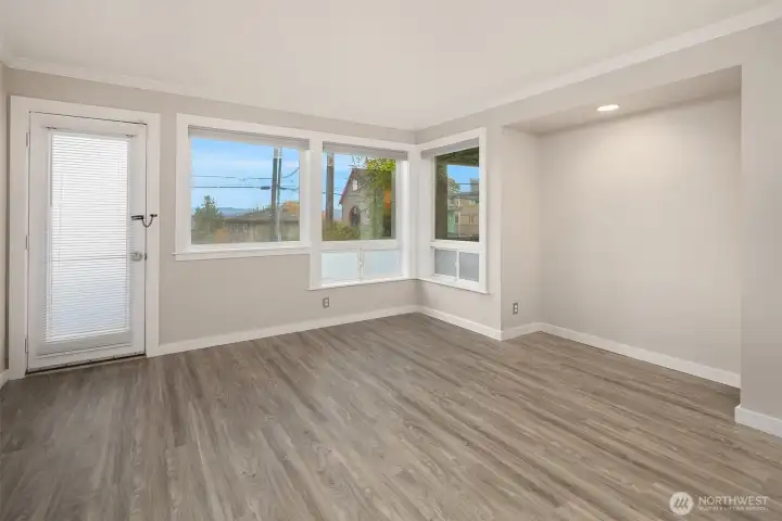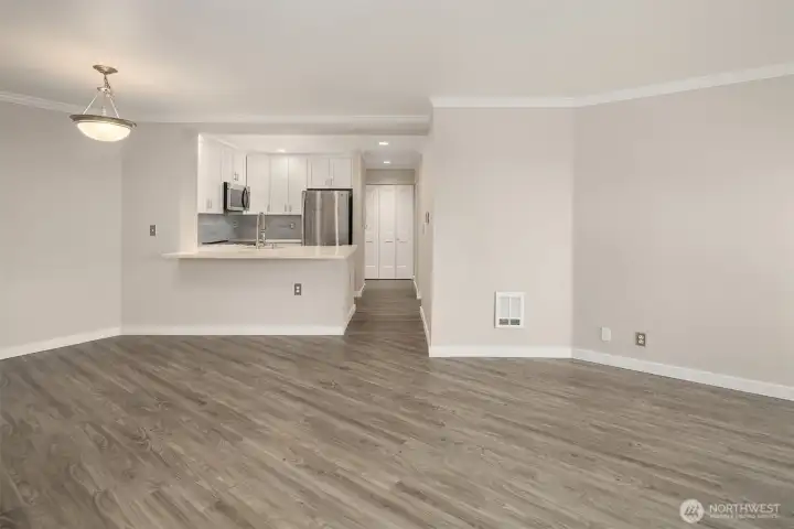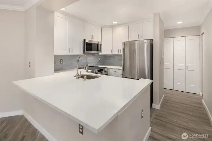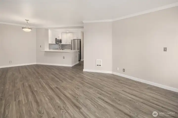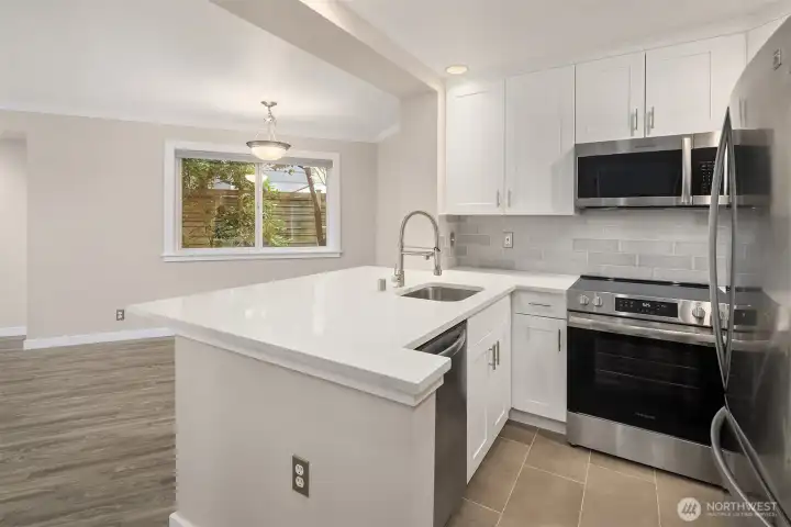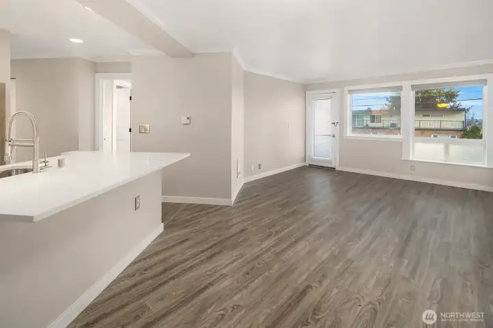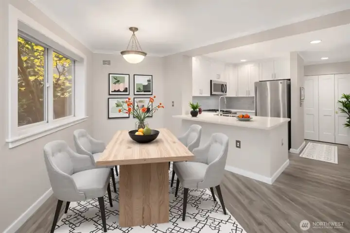 WOW! Priced to SELL! You're going to love this stylishly updated 2-bedroom, 1.5-bath condo features luxury vinyl plank flooring throughout and an inviting open-concept layout connecting the living, dining, and kitchen areas. The modern kitchen shines with new stainless steel appliances, sleek cabinetry, quartz countertops, and an eating bar for three. The roomy primary suite offers a walk-in closet, en suite bathroom, and a private veranda for relaxing. Enjoy in-unit laundry, secure garage parking, and a secured storage space. Located just minutes from shopping, the International District, Downtown Seattle, and easy access to I-5 and I-90, this condo offers the perfect blend of comfort, style, and city convenience. Don't miss this one!