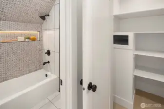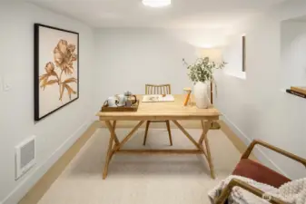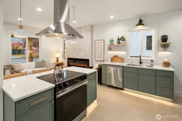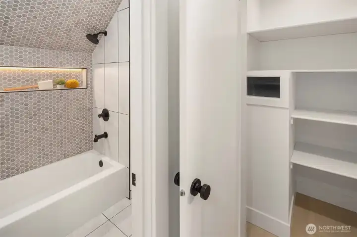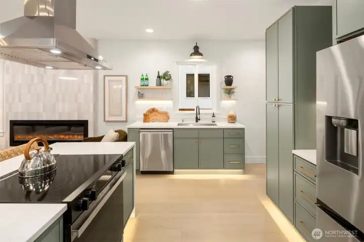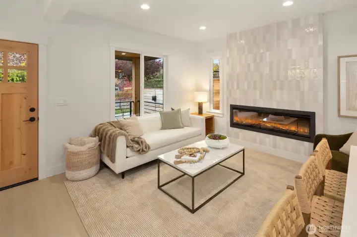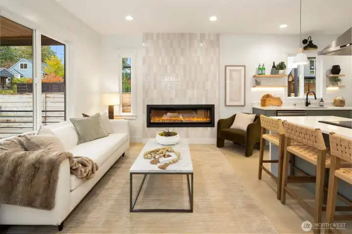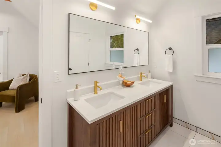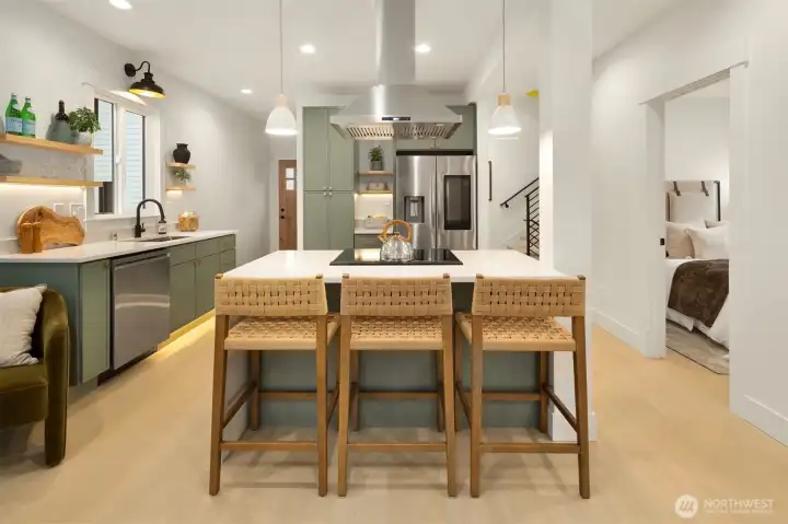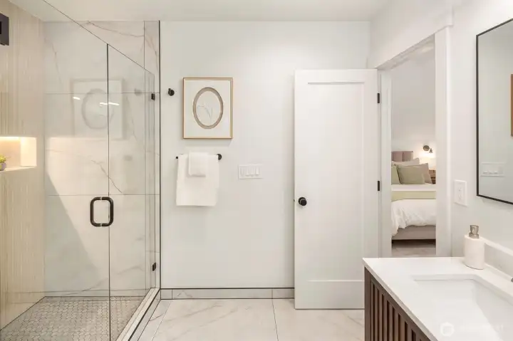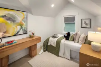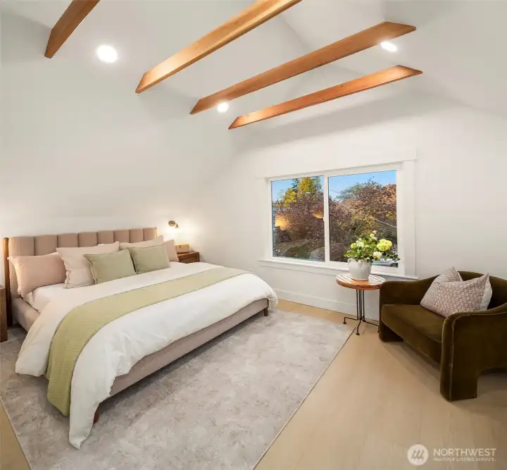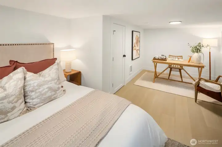 Stunning renovation on this turn-of-the-century craftsman weaves classic charm with modern upgrades. Main floor welcomes you with a NW inspired open living space, tiled hearth/fireplace, and a kitchen/dining room you’d see in an interior design magazine. Bedroom/office, powder, and mudroom complete this floor. Upstairs, the primary suite features vaulted ceilings with clear cedar rafters, bedside sconces, a massive walk-in shower with LED niche, and a double vanity with all the bells and whistles. Down the hall is another bedroom, full bath and linen closet with laundry chute! Downstairs, a bonus room, laundry room, half bath, and bedroom/office complete the home. Fully fenced, off-street parking, and steps to Loyal Heights sports park!