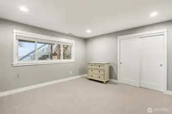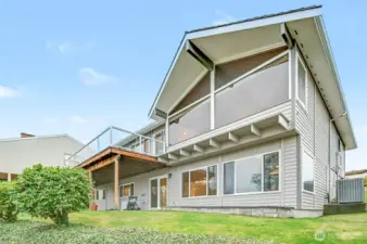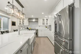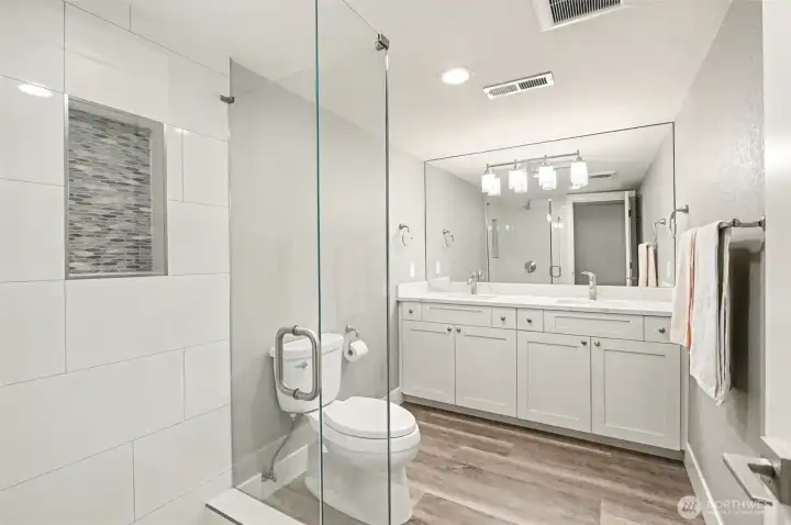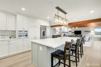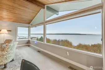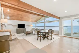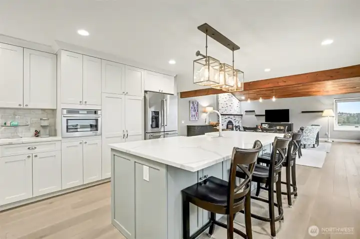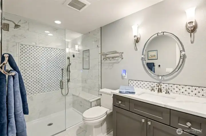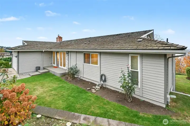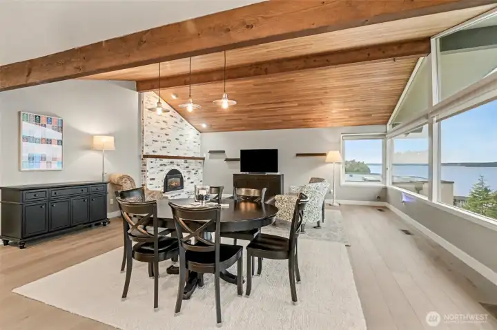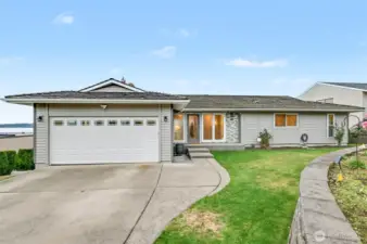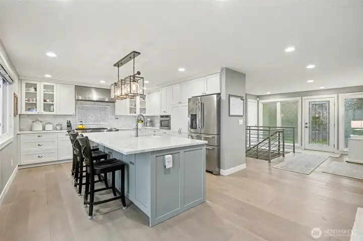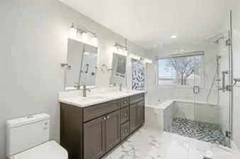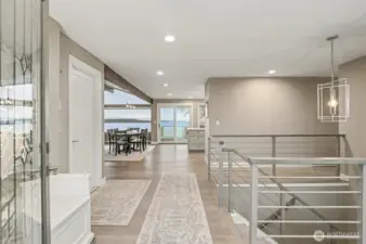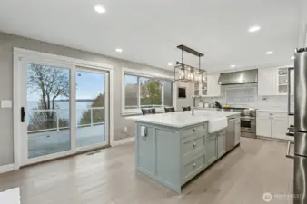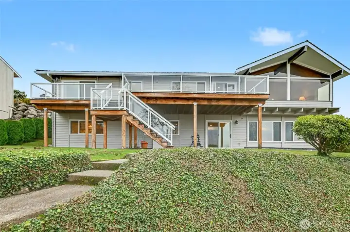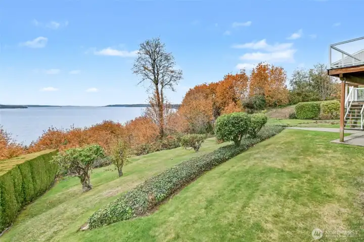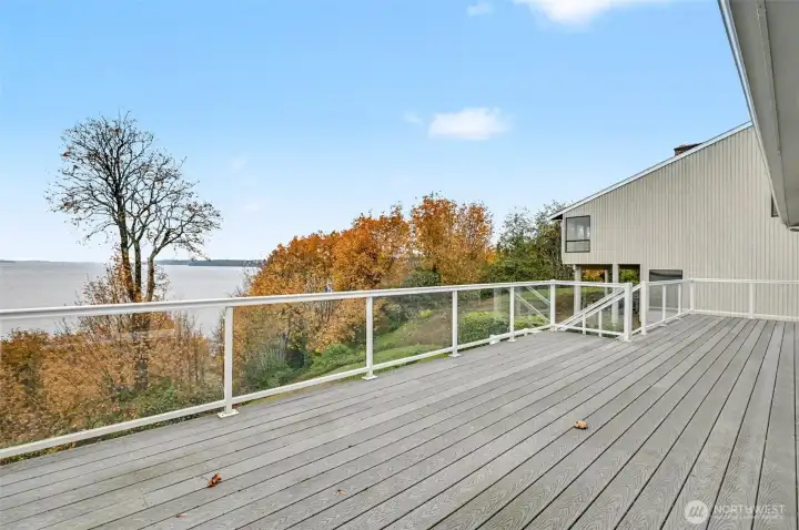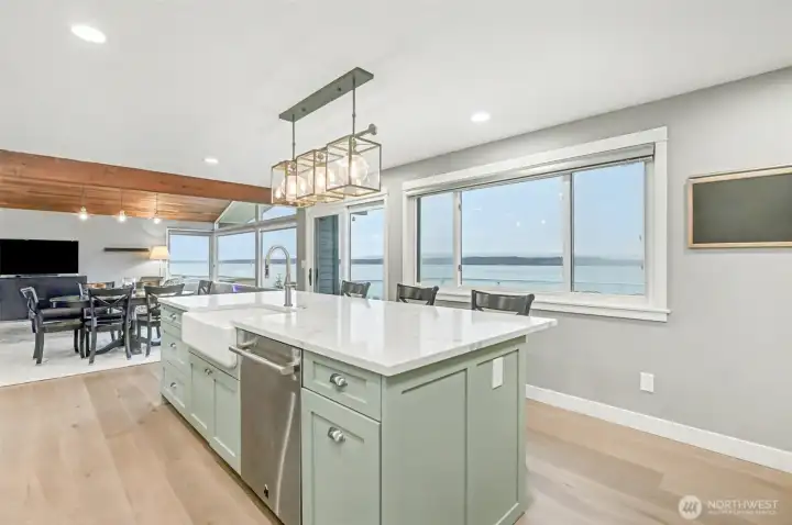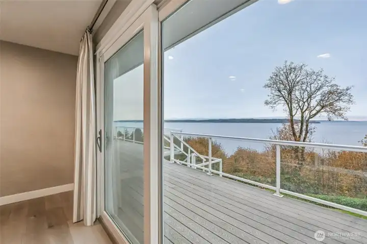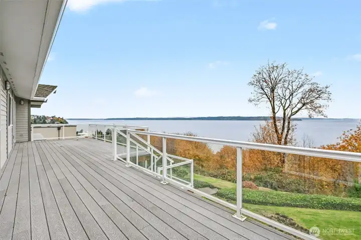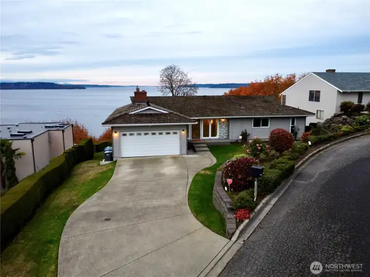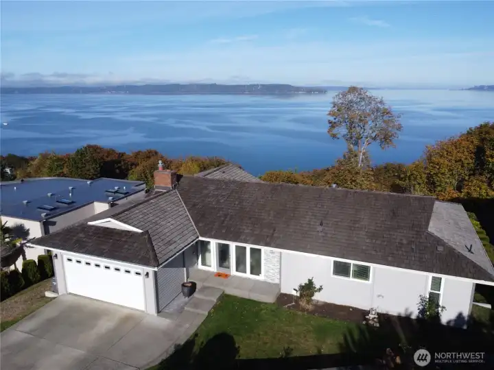 Completely reimagined in 2018 with high-end finishes, this 3340 sf, 5-bedroom home sits on a rare 19,000 sf lot with stunning westerly views of the Sound and Olympic Mountains—no homes in front, just endless beauty. Two luxurious primary suites on the main level plus three bedrooms below offer flexible living. Every detail was thoughtfully upgraded: relocated kitchen with quartz island and marble backsplash, dual-sink master bath with heated floors and zero-threshold shower, new flooring, lighting, fixtures, and expanded entry. Basement features LVT floors, upgraded bath, laundry, and custom cabinetry. Exterior enhancements include stonework, lighting, and extended entry. A rare blend of privacy, craftsmanship, and panoramic serenity.