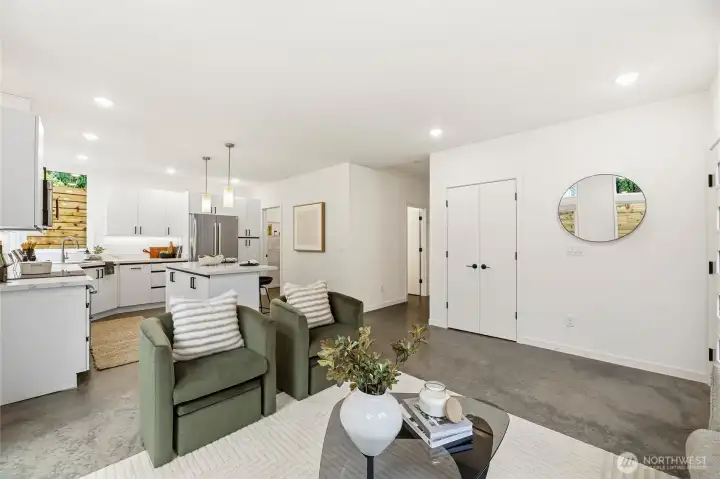 Experience the ultimate in modern Seattle living...This stunning ight-filled new construction home offers generous living spaces, a gourmet kitchen, spa-inspired bathrooms & a sunny west-facing deck. Built with quality and modern aesthetics in mind, this home provides the ideal blend of comfort and style. Ample garage w/ EV Charger. Plus an attached permitted ADU with separate entrance. Live comfortably in the main residence while generating substantial rental income from the ADU, perfect for offsetting your mortgage or providing a private suite for extended guests. Nestled on a tranquil street, just minutes away from the Interurban Trail, Greenwood & Phinney Ridge. This property is more than a homeāit's a smart lifestyle investment!