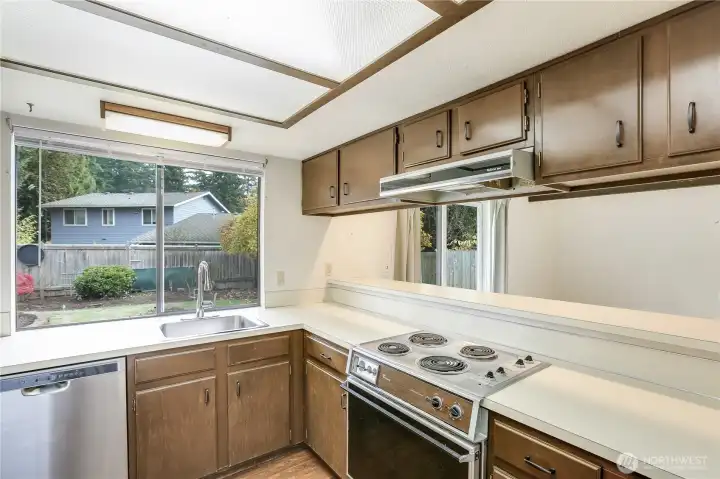 All on One Floor? Welcome to this well maintained rambler on Kent's West Hill neighborhood. A light and bright open living & dining area is warmed by a wood burning fireplace. Flow from the entertaining space to the kitchen and a spacious casual room perfect for gatherings, games or relaxing movie nights. The bedroom wing includes a primary bedroom with a private bath, 2 additional bedrooms + a full size hall bath. Step through the slider to a level, fully fenced backyard for gardening, play and outdoor living. Modern upgrades include newer roof, central A/C, tankless water heater & generator. Two car garage adds convenience & extra storage. Walk to nearby West Fenwick Park, minutes to Riverbend Golf, I-5 & HW-167, transit & SeaTac Airport.