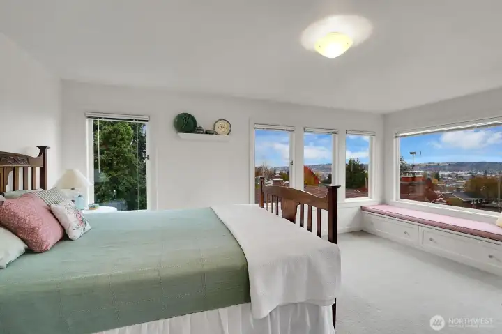 Wonderful circa 1928 Craftsman retains its original charm with gorgeous period millwork, coved ceilings, leaded glass windows, picture rail molding, tiled fireplace, glass doorknobs, & more. Enjoy sweeping views from every level, including two new decks overlooking a sunny, level backyard. Upstairs, both bedrooms feature cozy window seats, stunning westerly views, walk-in closets, & access to the upper deck. Don’t miss the delightful nook currently used as an office. A bonus room on the main level offers flexibility as an office, den, or 4th bedrm. Imagine the possibilities with a kitchen remodel or finishing the basement with French doors to a patio & garden. Tucked on a quiet, friendly street close to so many charming shops & restaurants.