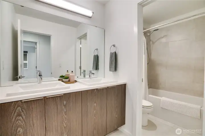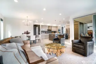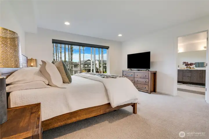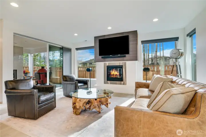 Discover modern luxury in Tehaleh's vibrant 4,700-acre master-planned community, where Puget Sound meets Cascade foothills with stunning Mount Rainier views. Step beneath vaulted ceilings into this 2022 MainVue Nolina-four bedrooms, 3.5 baths, 2,975 square feet of effortless flow. Gourmet kitchen flows straight to the patio-wired for overhead heat, gas fireplace glowing, perfect for year-round evenings-alongside fourteen parks and forty miles of trail at your feet. Upstairs: primary with soaking bath and vast walk-in, plus bonus room; everywhere else, designer finishes, soft recessed lights, crisp quartz. Two-car garage, electric charger, top schools-your forested retreat's complete.
