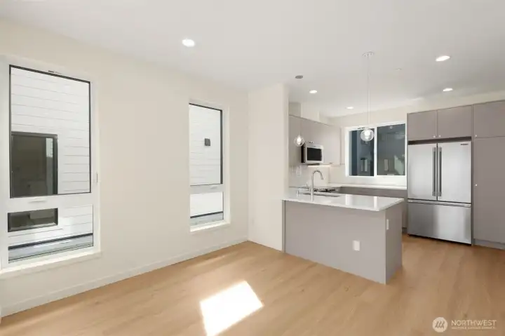 Rates as low as 1.99%* — Built by the acclaimed Shelter Homes!! Act quickly to secure this thoughtfully designed, street-front, 1332 sq. ft. home w/ attached GARAGE, a roof deck w/views, a bright, light-filled interior, & 3 bedrooms. The main level features the garage space, and a bedroom. The next floor provides floor to ceiling windows in the living area - with dining space and the designer kitchen. The top floor boasts two bedrooms & the laundry. Bright, light-filled interior, enjoy EV readiness, power & water on the deck, & courtyard access to the garage—Sited directly across from Crown Hill Park, this community will offer everything you love about Seattle living: Met Market, Golden Gardens, shops, dining, & transit! *Terms apply