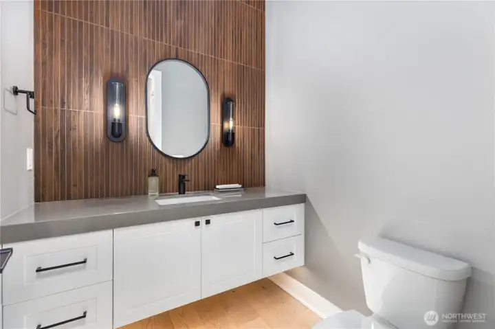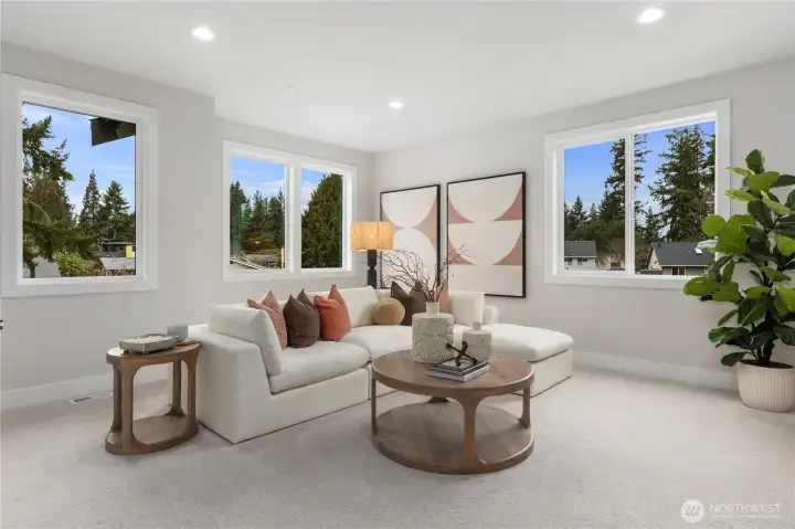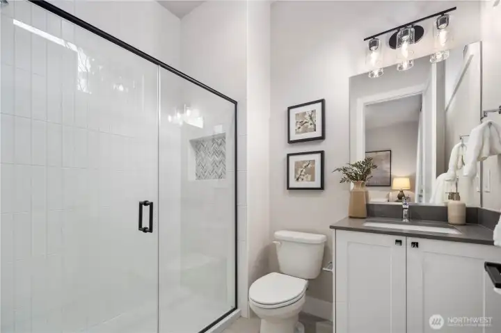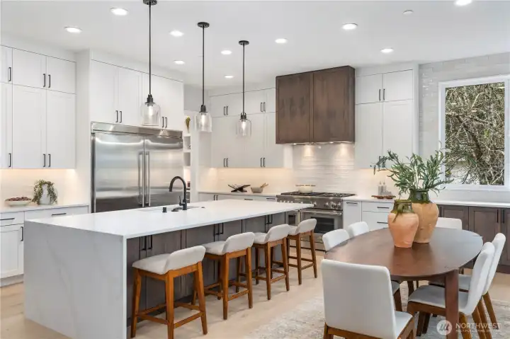Introducing Terrene Homes’ latest bespoke residence. The "Ardmore" delivers refined modern living in a premier Bellevue setting moments from tech giants like Mircrosoft, Amazon, and Meta. This newly completed home spans 4,411 square feet and showcases an exceptional architectural layout w/ 10' ceilings, 8' doors, and a stunning 2 story living space sun-drenched with natural light. The culinary space is outfitted with top-tier professional appliances, an oversized 66" Electrolux fridge, handpicked stone, auxiliary prep station, and a generous pantry. The main level offers a private guest suite with a walk-in-closet, dual home offices, and extensive built in storage throughout. Upstairs primary suite provides a resort-level experience featuring heated flooring, skylights, spa-style bathing environment, and a custom dressing suite with direct access to your upper level laundry room. Outdoor entertaining is seamless with a covered terrace, built in speakers, and gas fireplace overlooking a fully enclosed, irrigated, and secluded backyard. Ideally positioned near Lake Sammamish, premier golf destinations, shopping corridors, and some of the Eastside’s most celebrated parks. This is the one you've been waiting for.